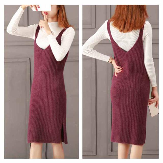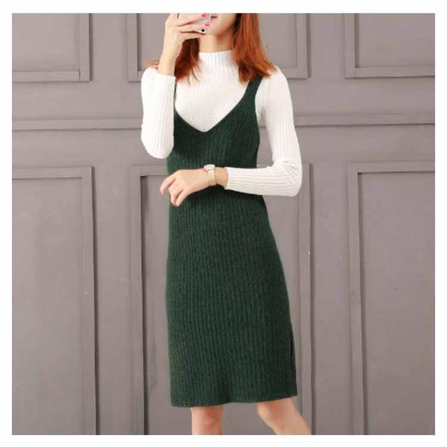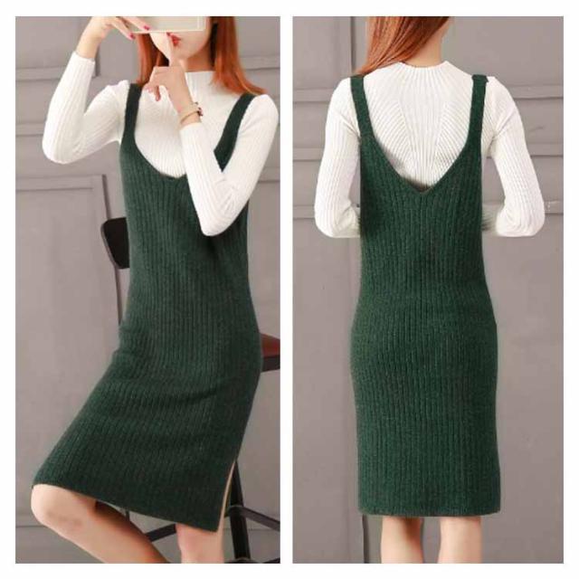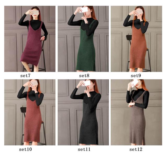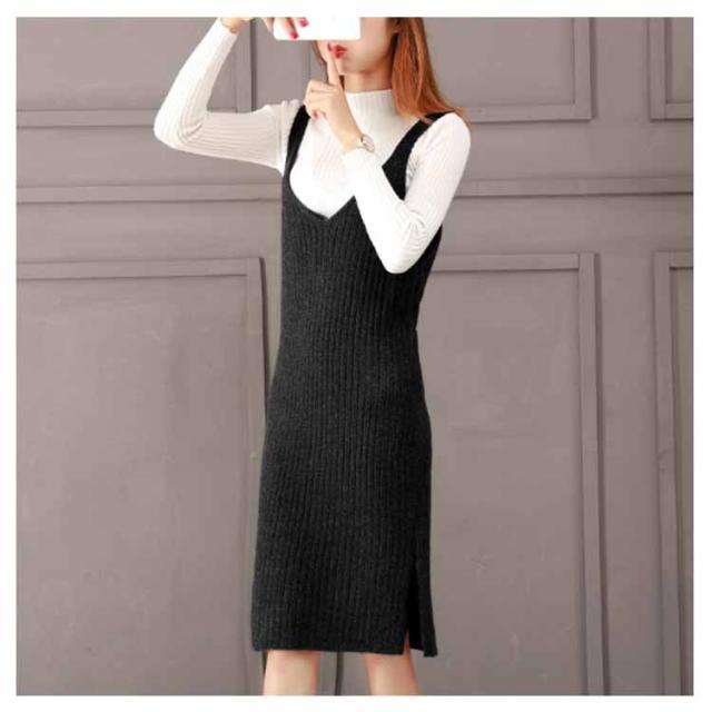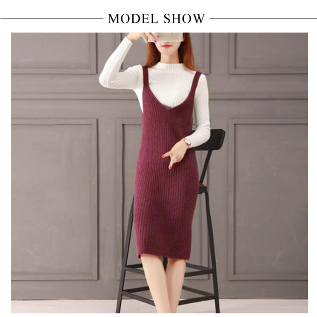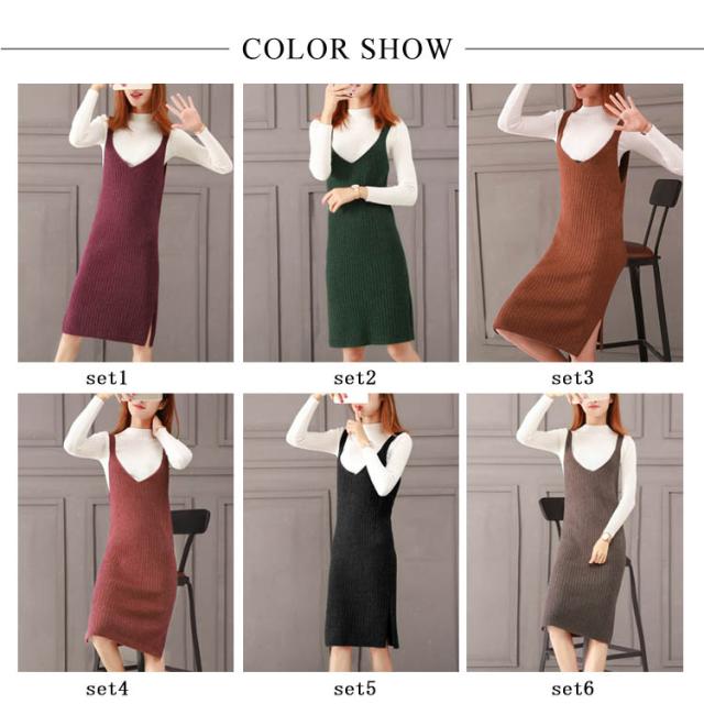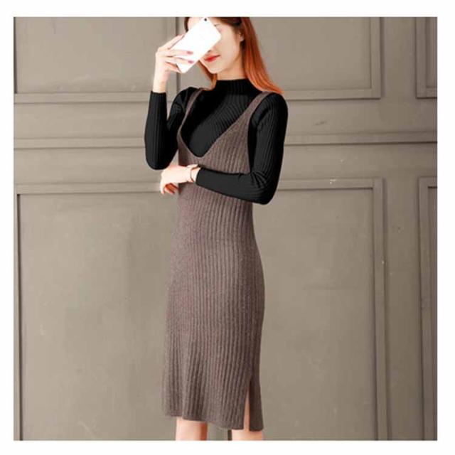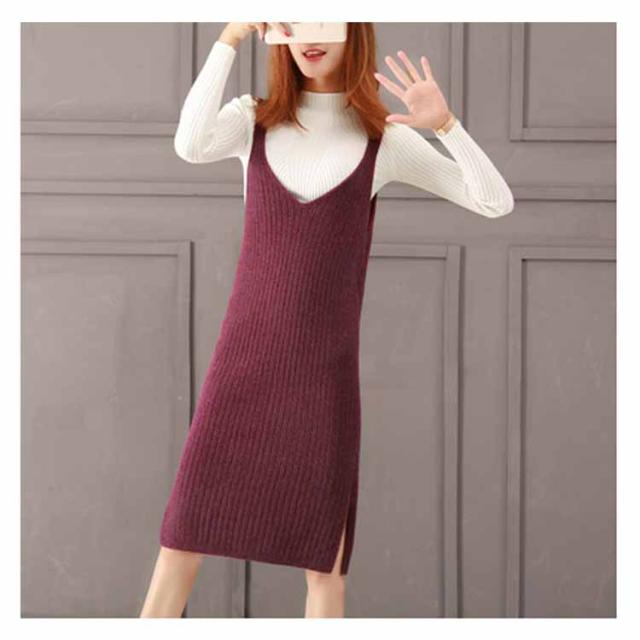 レディース ニット2点set ニットキャミソールワンピース ニットトップス シンプル 秋 冬