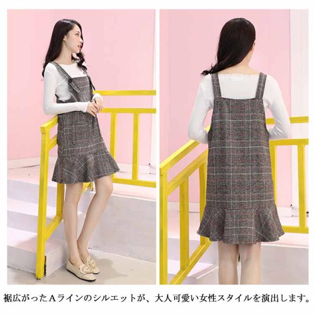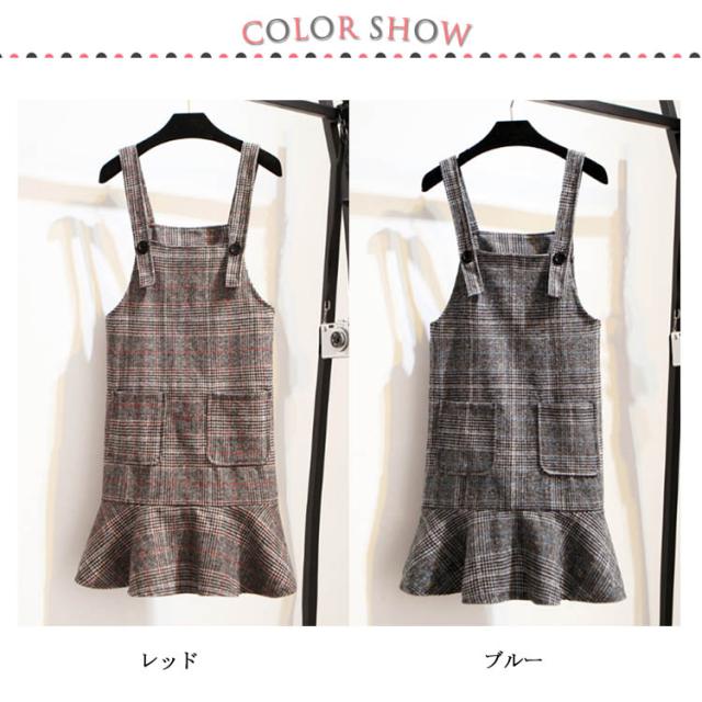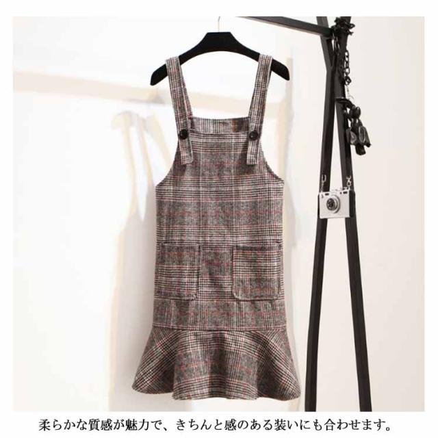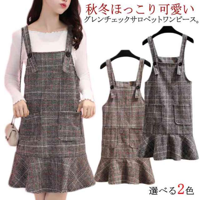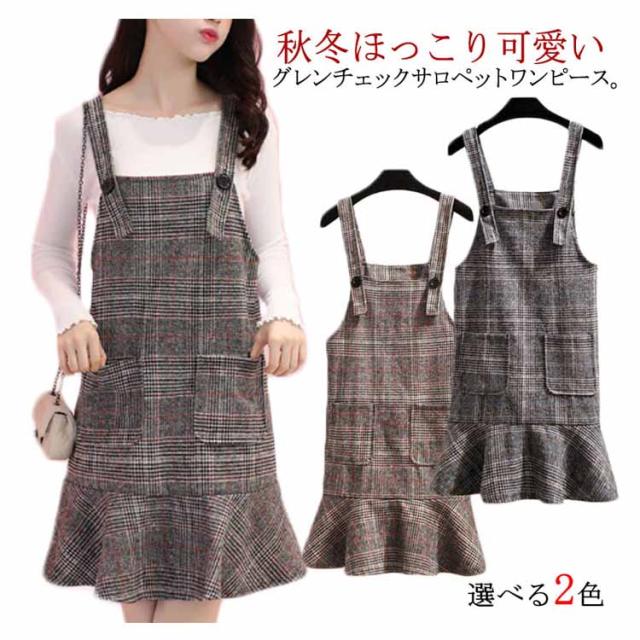 レトロなチェック柄のジャンパースカート!サロペット ワンピース ジャンパスカ グレンチェック