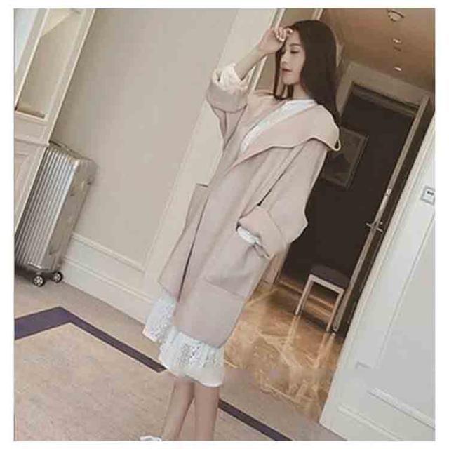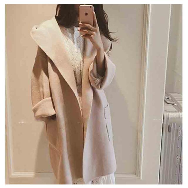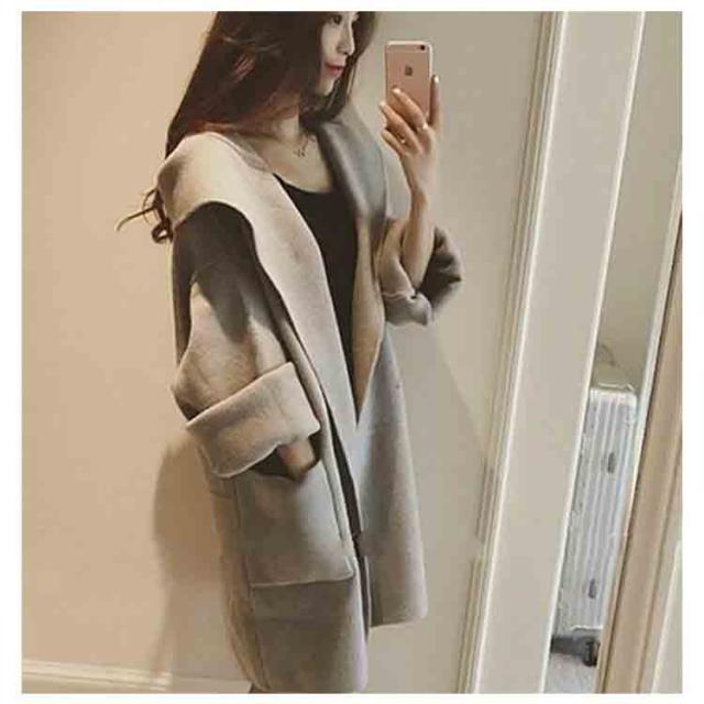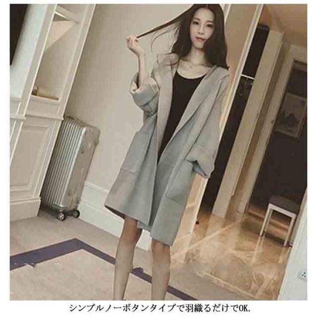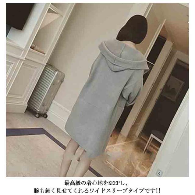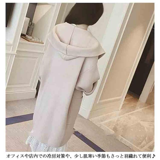 メルトン調素材 カーディガン フード付き アウター コート 春 秋
