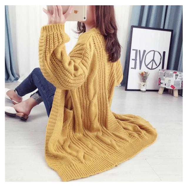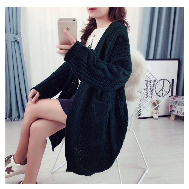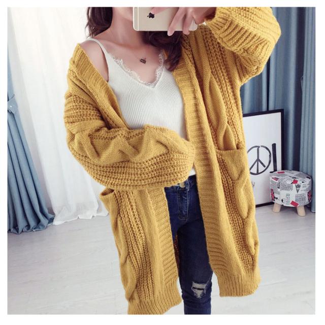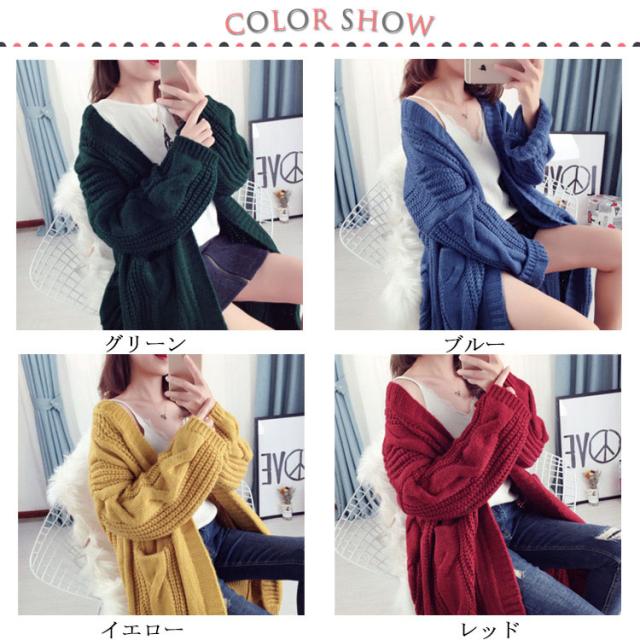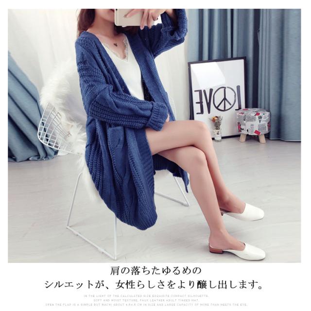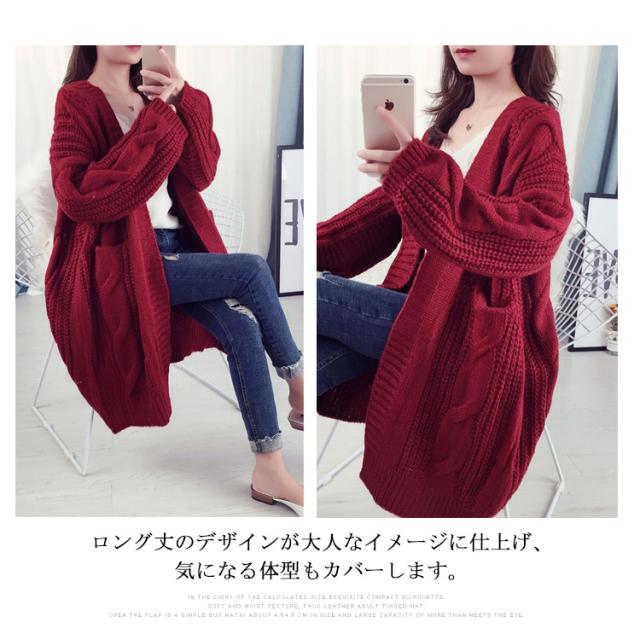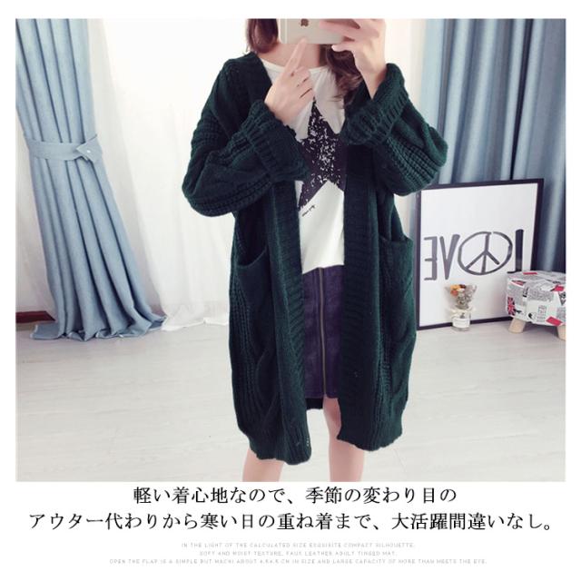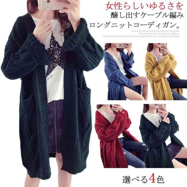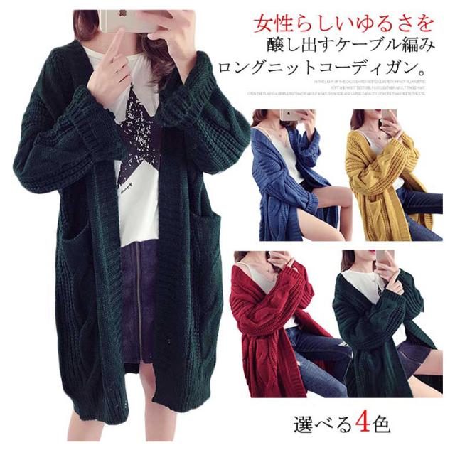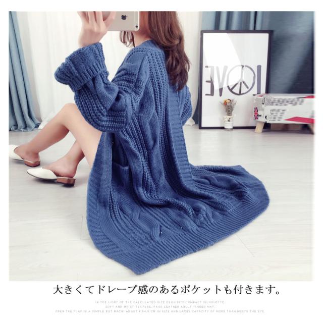 ポケット付き ロングニットカーディガン ケーブル ニット カーディガン 羽織り 体型カバー 可愛い