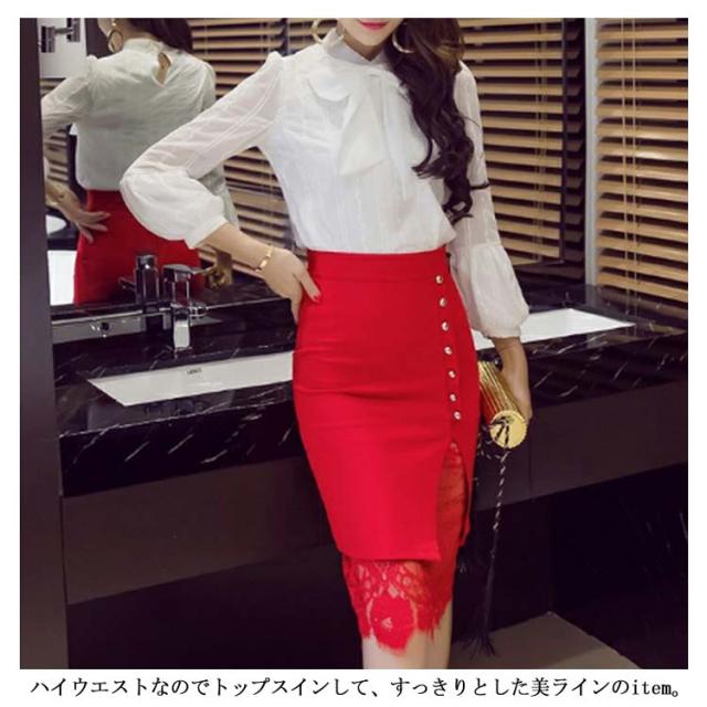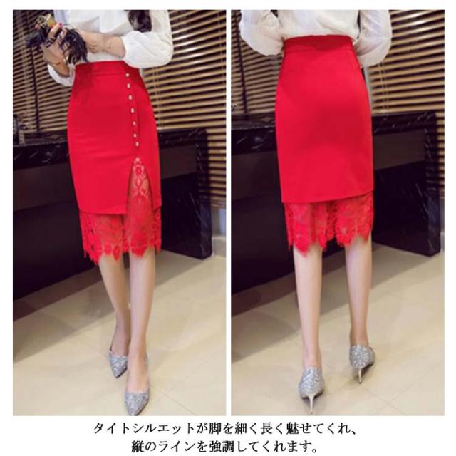 愛された女性らしいシルエット。レース 切り替え スカート タイトスカート ハイウエスト 美脚