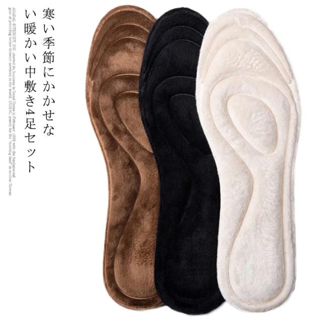 【送料無料】中敷き インソール 衝撃吸収 ファーインソール 4足セット サイズ調整 ボア 暖かい あったか 靴 足元 冬 もこもこ ふわふわ 肌触り 保温性 暖熱効果 消臭 薄型 パンプス スニーカー 男女兼用 土踏まず 疲れにくい 立ち仕事 腰痛 膝痛