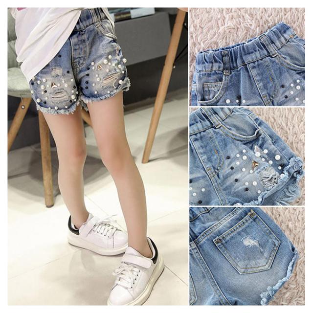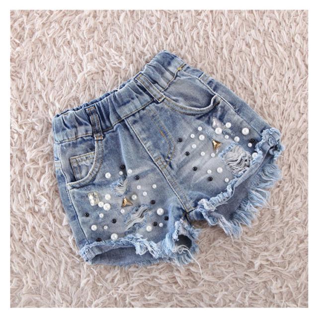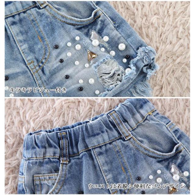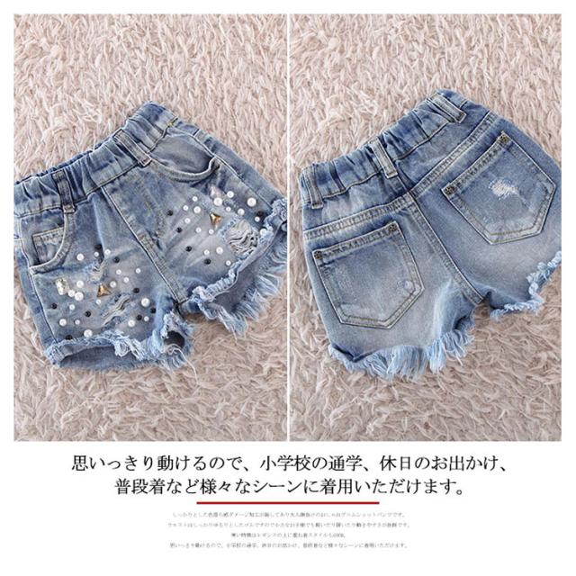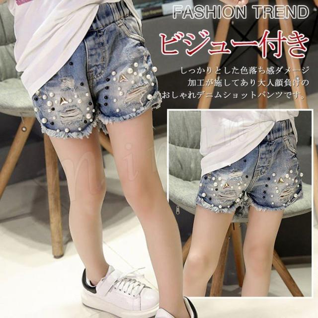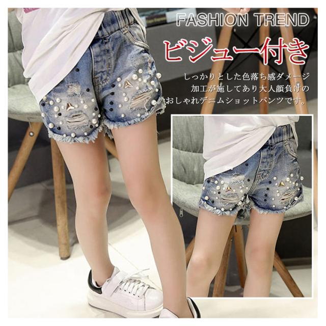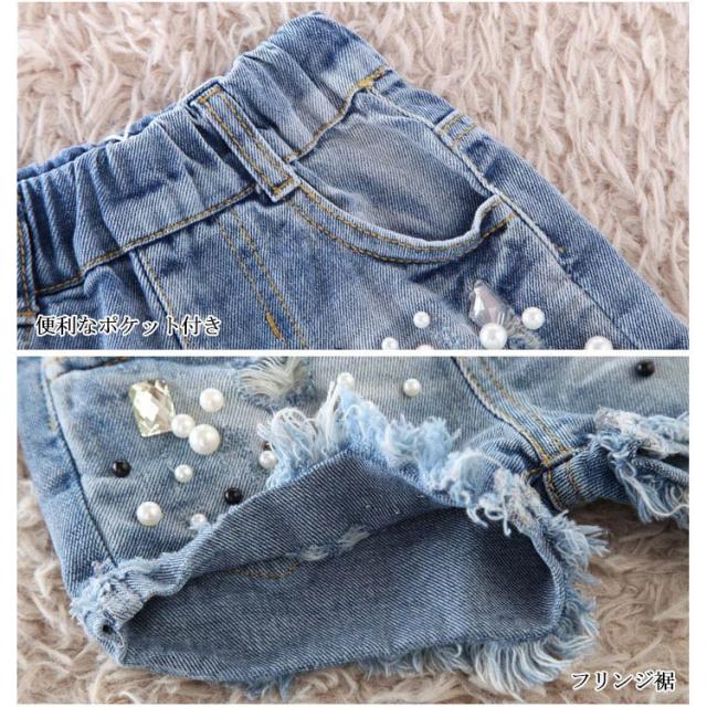 子供服 デニムショットパンツ 半ズボン 女の子 キッズ ショーツ ショートパンツ デニム ビジュー付き フリンジ ダメージ加工 子供 女の子 小学生 中学生 可愛い おしゃれ 100 110 120 130 140 150