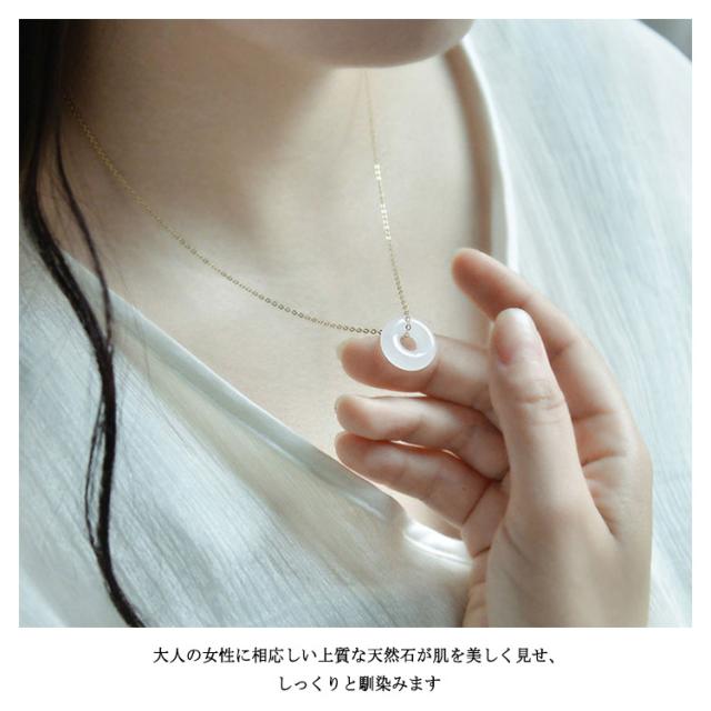 【送料無料】ネックレス ステンレス ゴールド ヒスイ 天然石 チェーン k18 翡翠 金属アレルギー 丸型 ホワイト 白 シンプル 大人 上品 エレガント パール フェミニン オフィス 通勤 会社 きれいめ プレゼント
