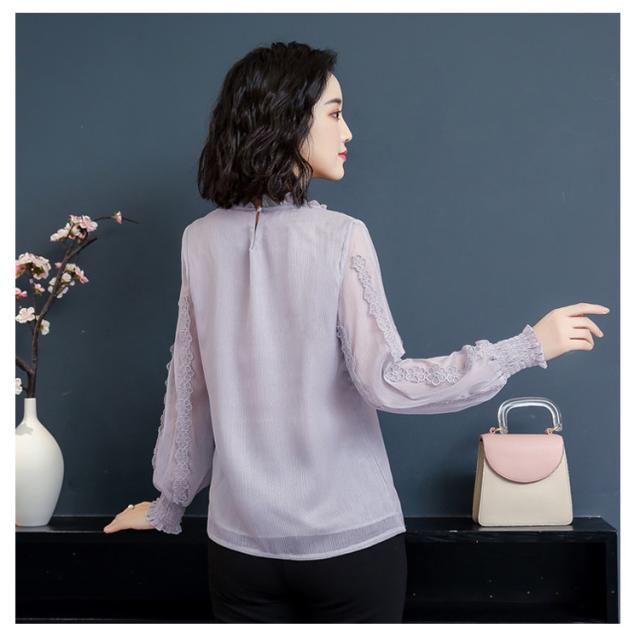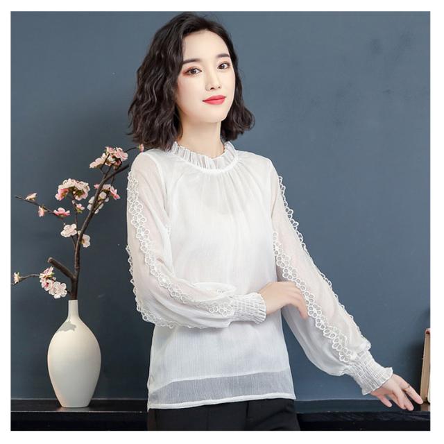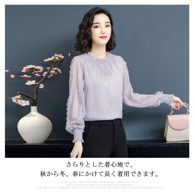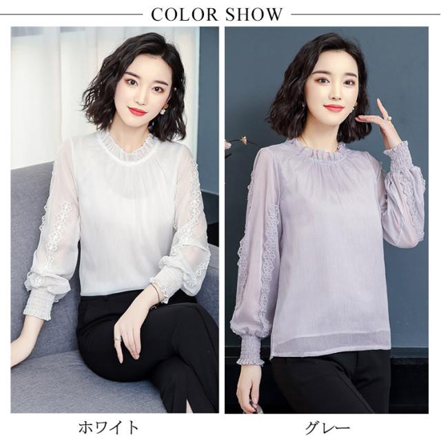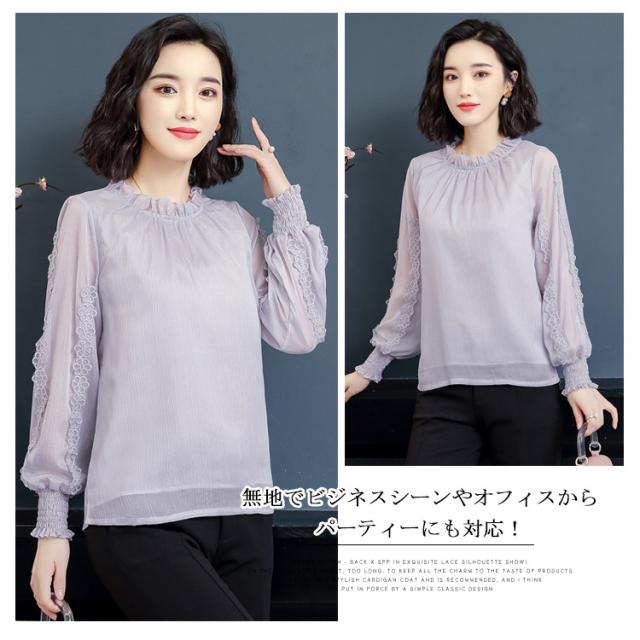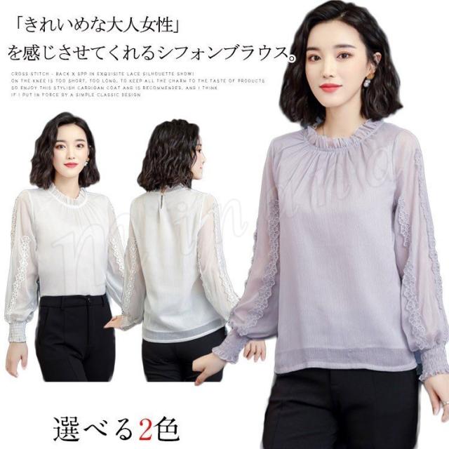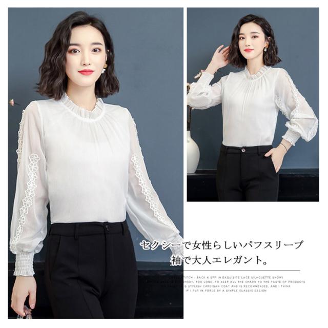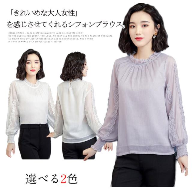 送料無料 シフォン ブラウス 長袖 レディース トップス パフスリーブ 大きいサイズ 刺繍 フォーマル 入学式 入園式 卒業式 授業参観
