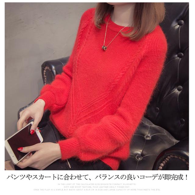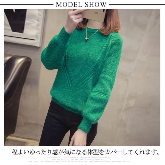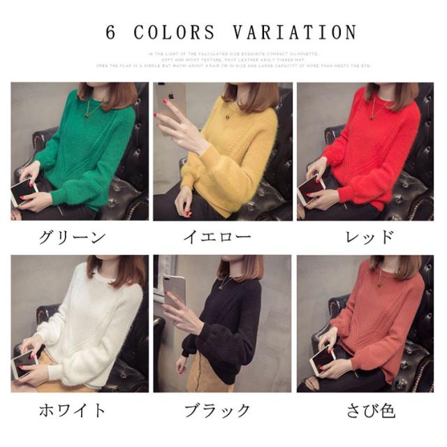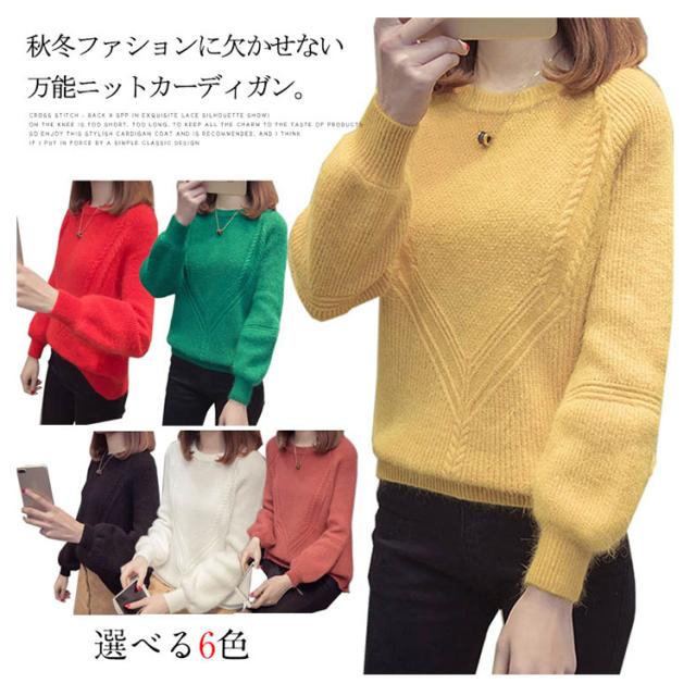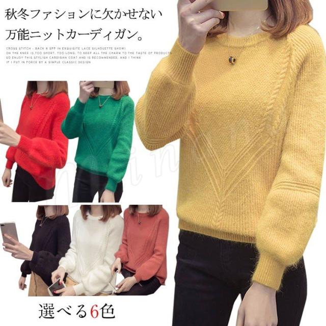 秋服 秋冬 ニット トップス セーター カーディガン レディース 長袖 バルーン袖 厚手 洗えるニット 無地 ゆったり