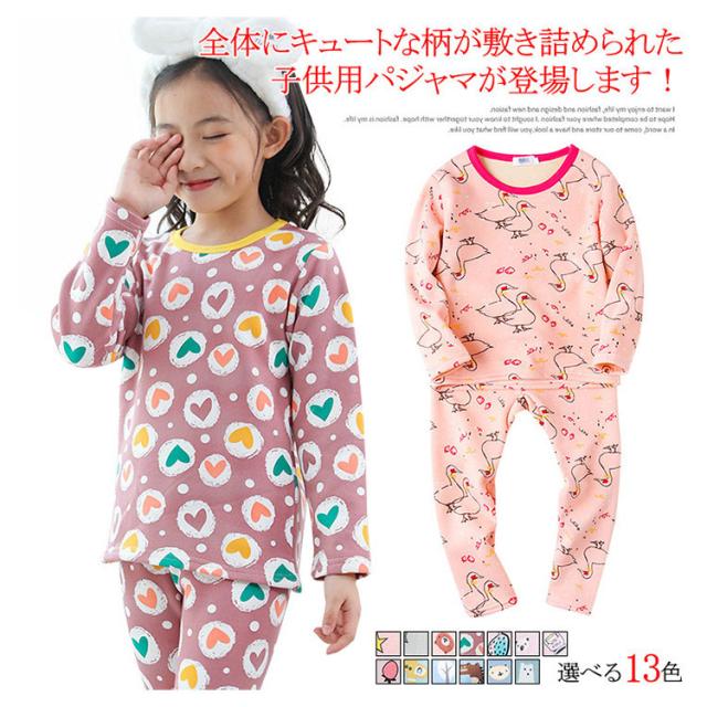 パジャマ キッズ 男の子 女の子 長袖 子供服 裏起毛 セットアップ 上下セット ルームウェア 寝巻き 冬物 花柄 可愛い 防寒 暖かい