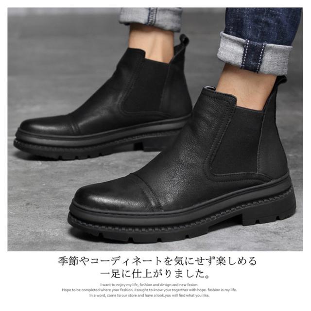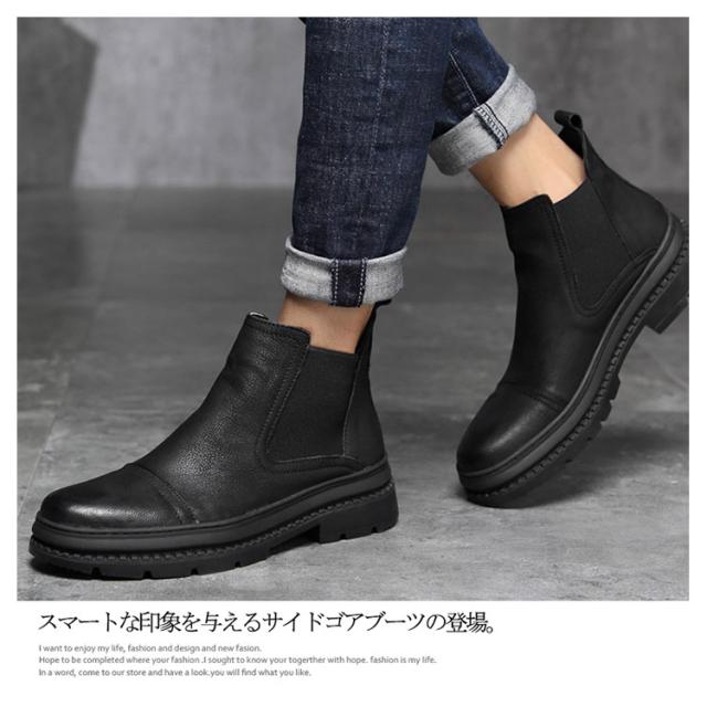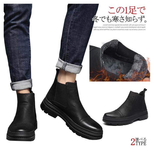 メンズ ブーツ 裏ボア サイドゴアブーツ ショートブーツ レザー 天然牛革 本革 サイドゴアブーツ チェルシーブーツ サイドゴア ブーツ カジュアルシューズ 靴 防寒 メンズ靴 革靴 紳士靴