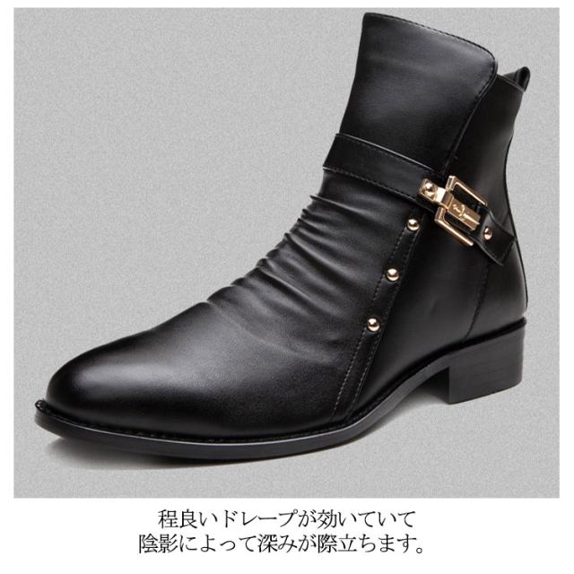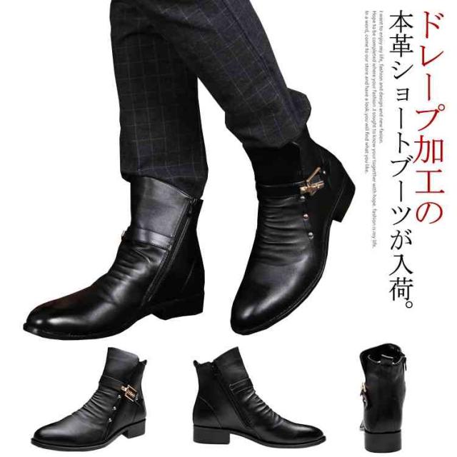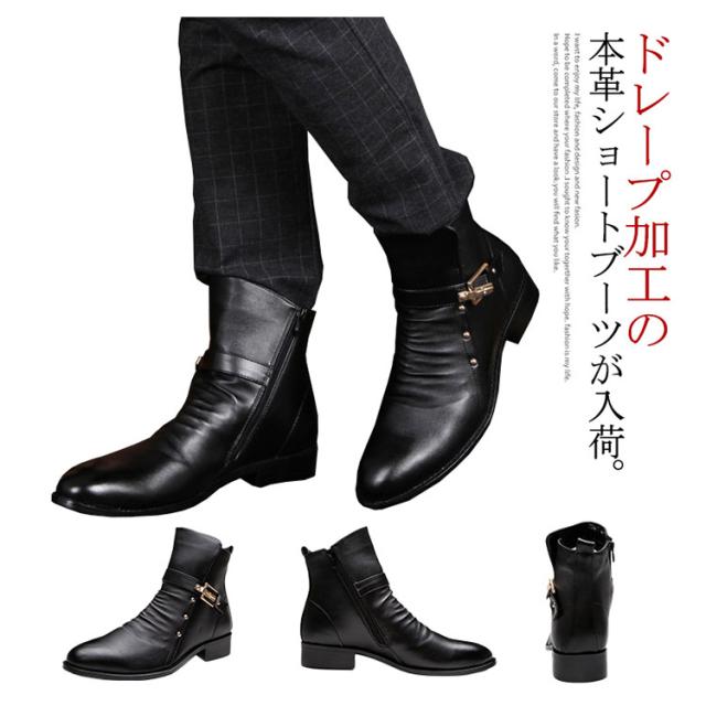 牛革 ドレープブーツ メンズ ブーツ サイドジップ サイドジッパー ショートブーツ 本革 レザー ブーツ レザーブーツ ワークブーツ エンジニアブーツ 長靴 悪羅悪羅系 オラオラ系 ビンテージブーツ