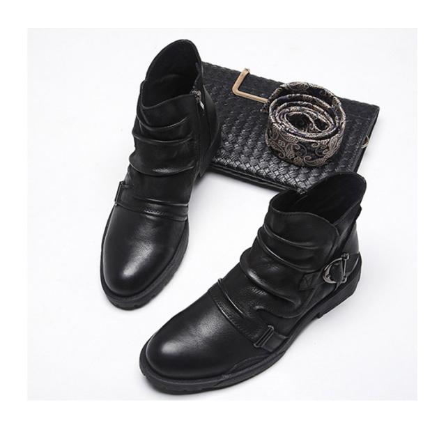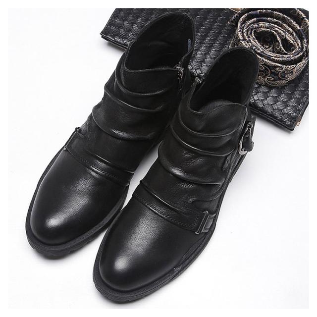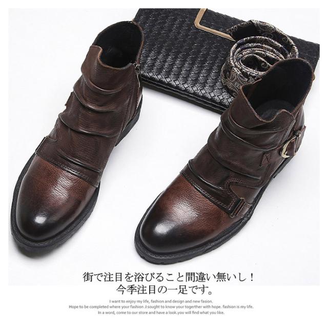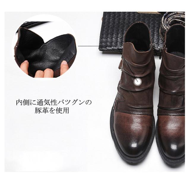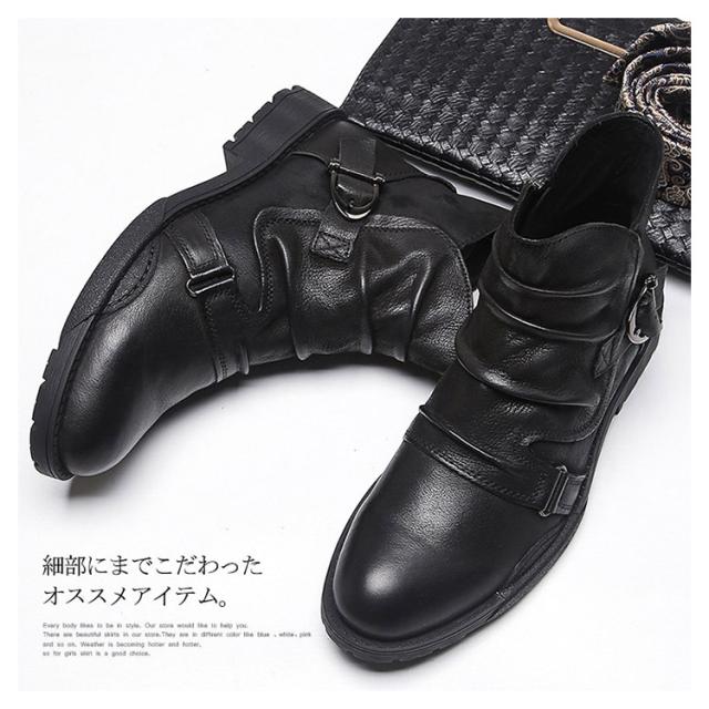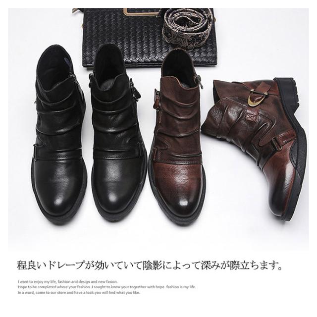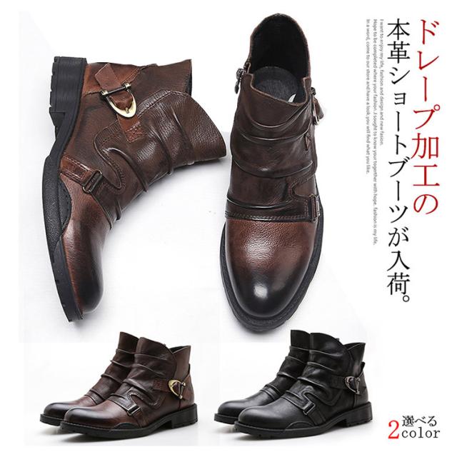 ドレープブーツ メンズ ブーツ ショートブーツ サイドジップ ブーツ サイドジッパー ブーツ レザーブーツ ワークブーツ エンジニアブーツ 長靴 悪羅悪羅系 オラオラ系 ビンテージブーツ