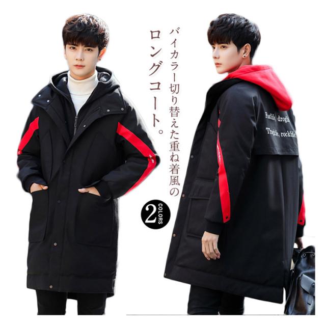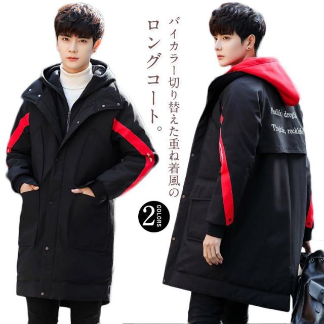 メンズコート ロング丈 中綿 コート ジャケット レイヤード 重ね着風 オシャレ