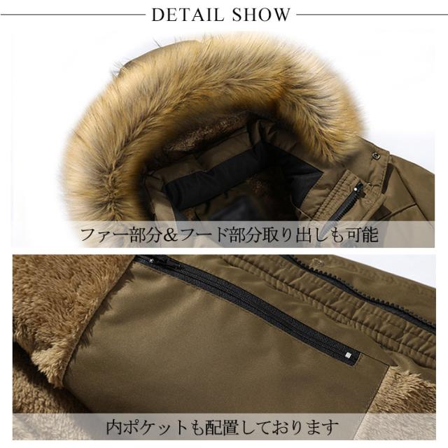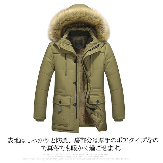 M-4XLサイズ!モッズコート メンズ ミリタリージャケット 裏ボア 防風 防寒 ファー フード付き