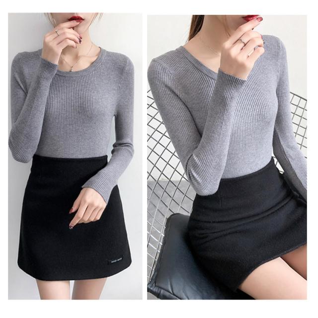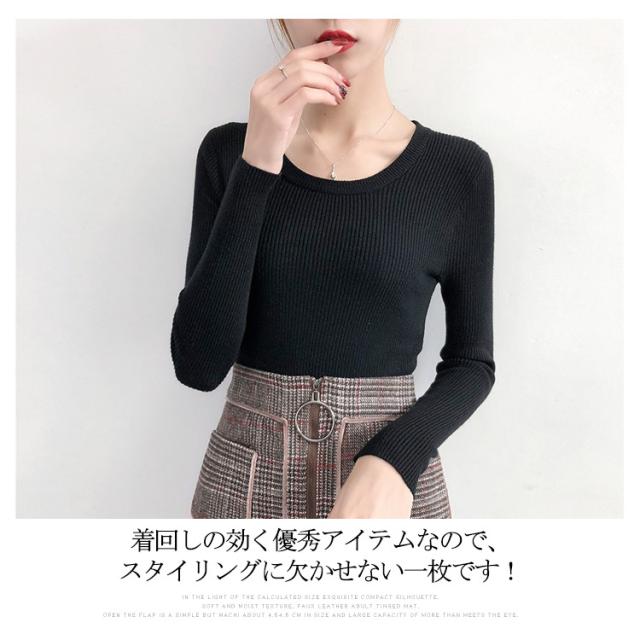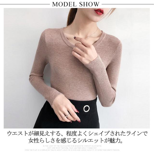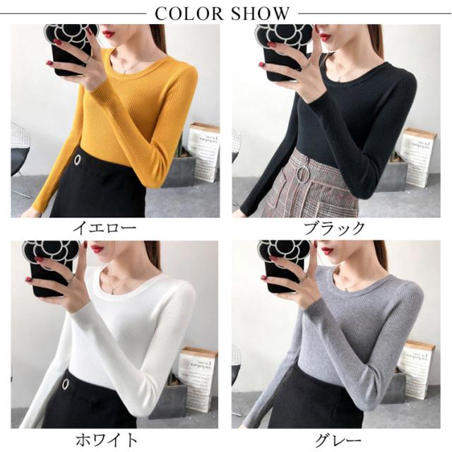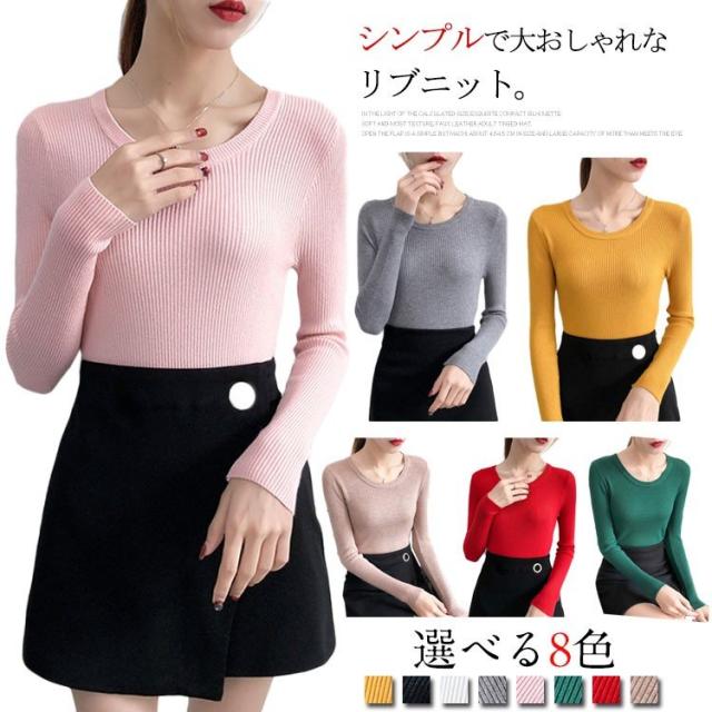 やわらか、ふんわりリブニット。秋物 秋服 冬インナー ニット トップス クルーネック 大人 女性