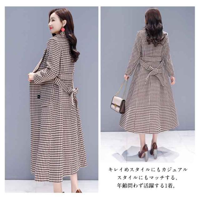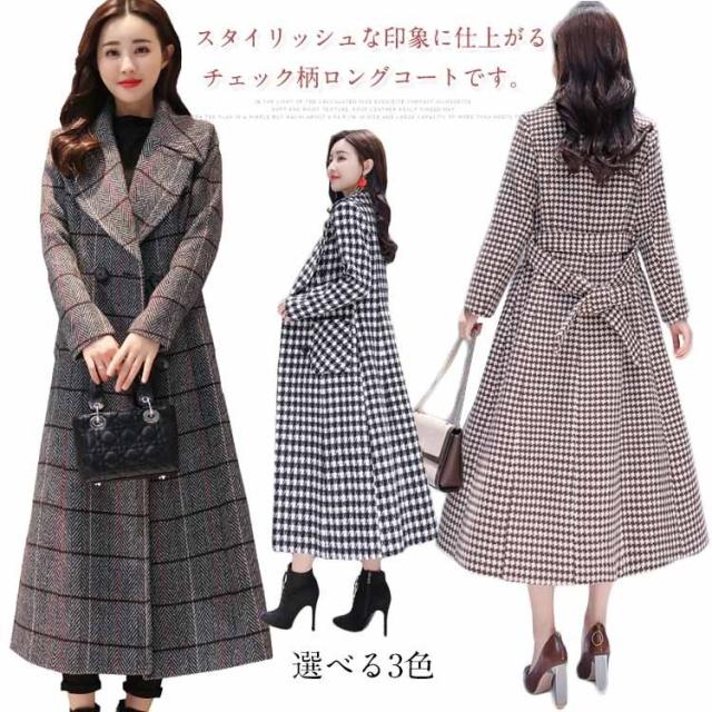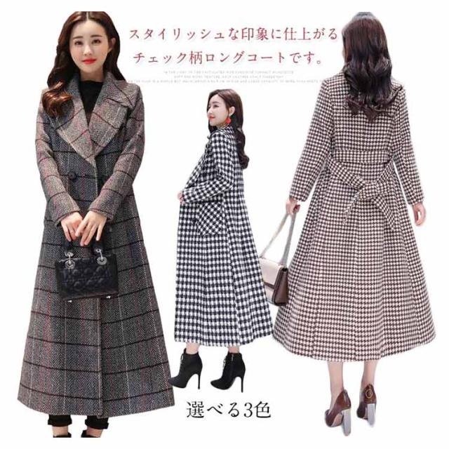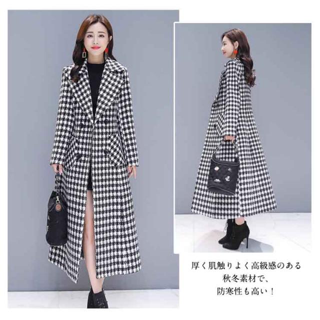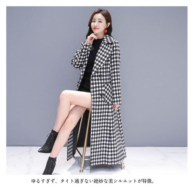 超ロング丈で大人上品!ロング丈 チェスター コート 大人 女性 チェック 柄 上品 エレガント