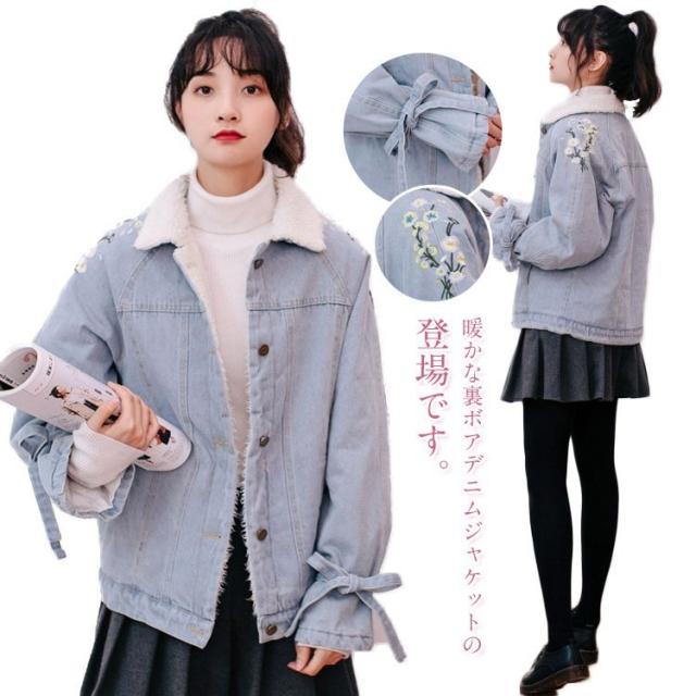 裏ボアデニムジャケット レディース Gジャン デニム ジャケット 裏ボア 冬物 暖かい ボア