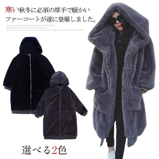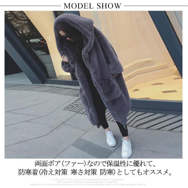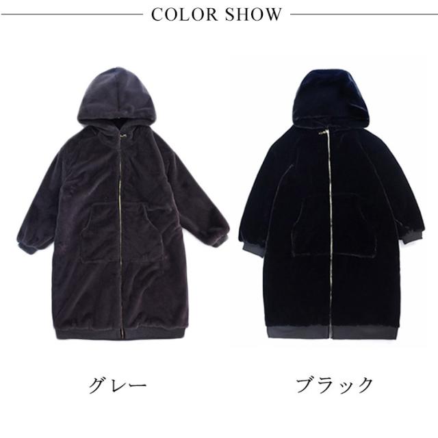 もこもこフワフワのボア仕様!ロング丈 オーバーコート パーカー ボアブルゾン ボアコート ロング 厚手 ロングコート フェイクファー ボア