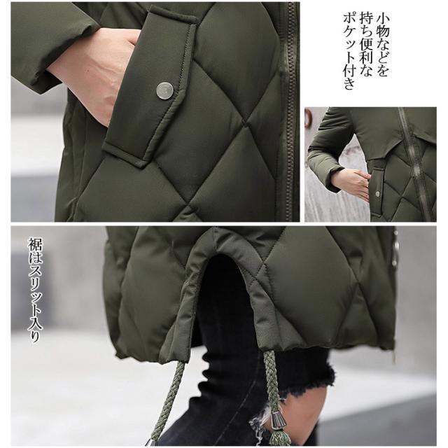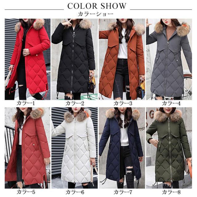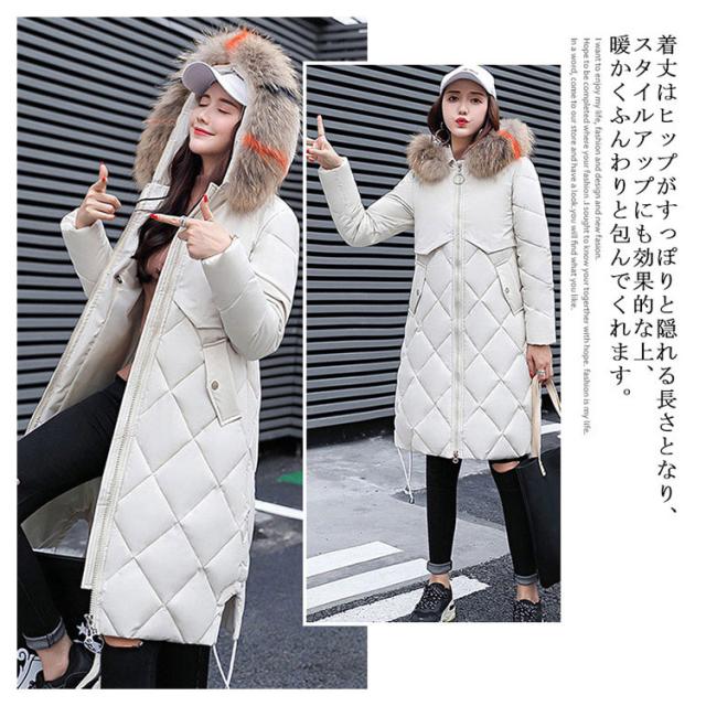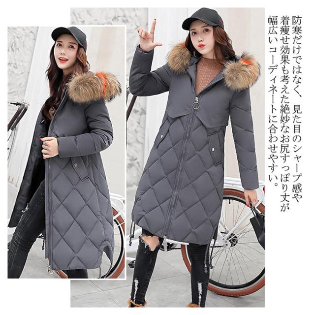 ダウンコート 中綿コート 綿入りコート ロングダウンジャケット ファーフード付き