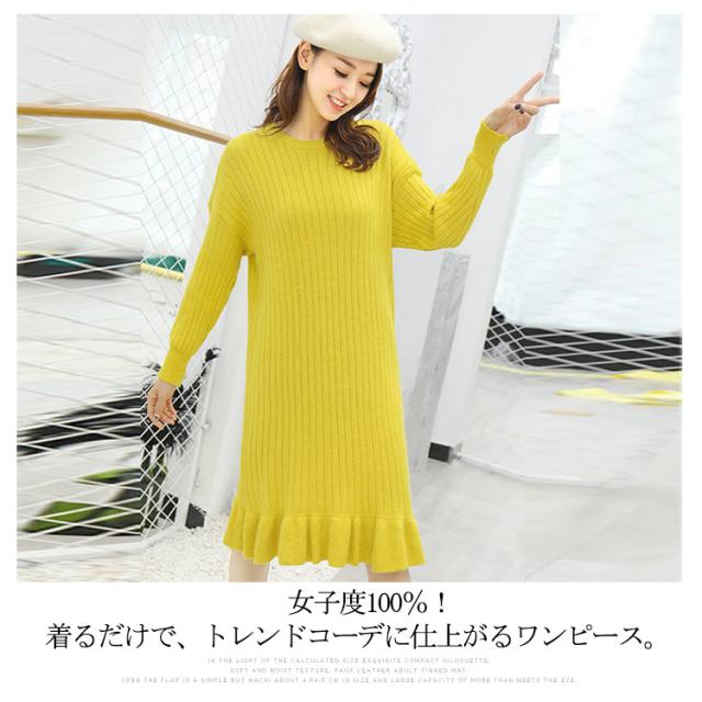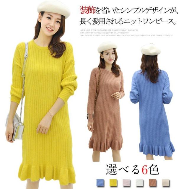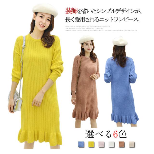 クルーネック ニットワンピース マーメイドライン