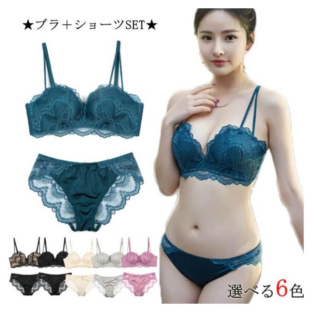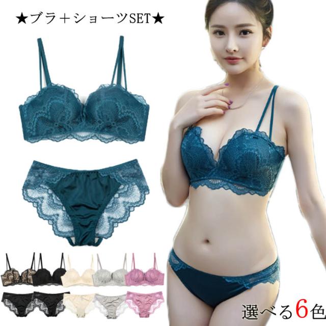 ブラ&ショーツセット ノンワイヤー ブラジャー 1/2カップ