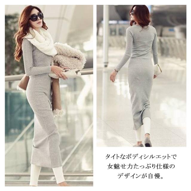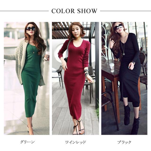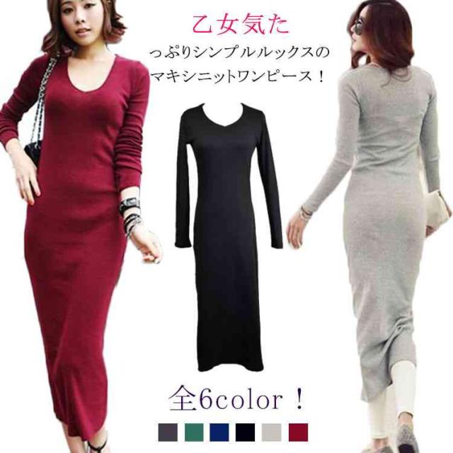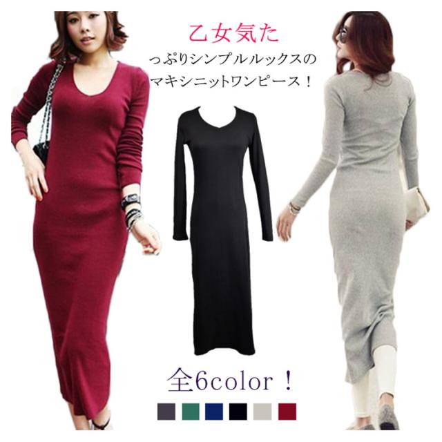 シンプル大人Ladyに♪Vネック ニットワンピース マキシ丈 ロング丈 レディース ニット ワンピース 秋冬