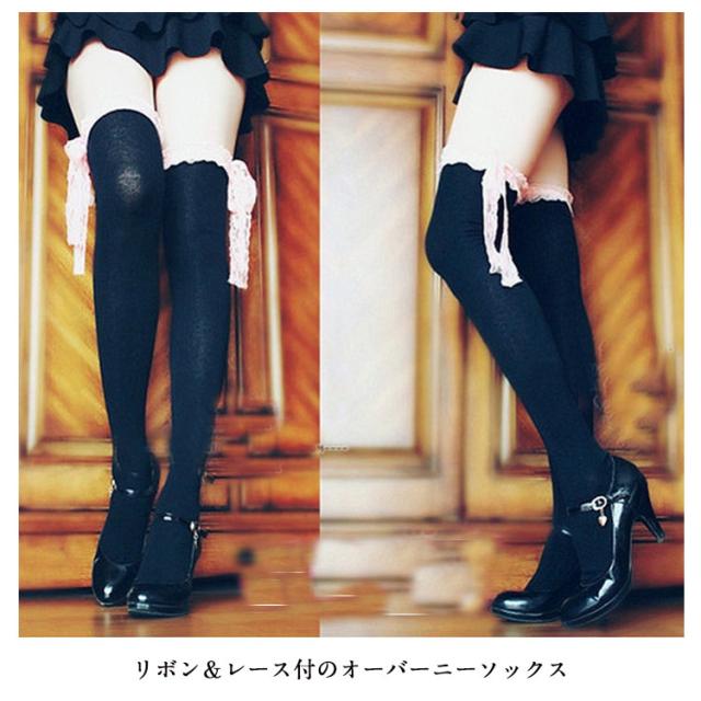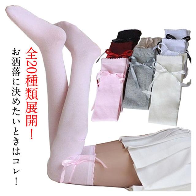 全20種類展開!オーバーニーソックス オーバーニーハイ 無地 ニーハイソックス レース 靴下 レディース