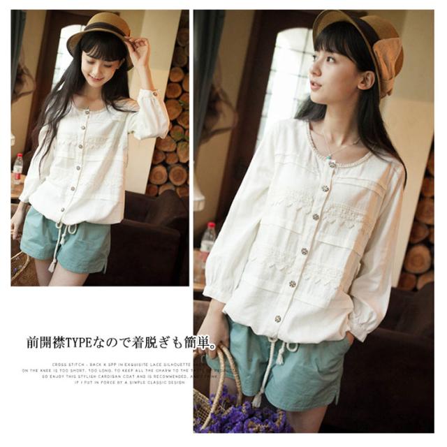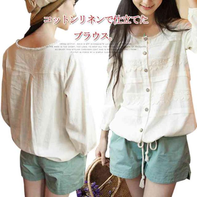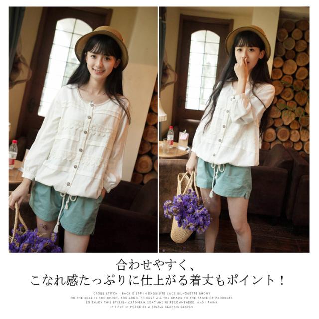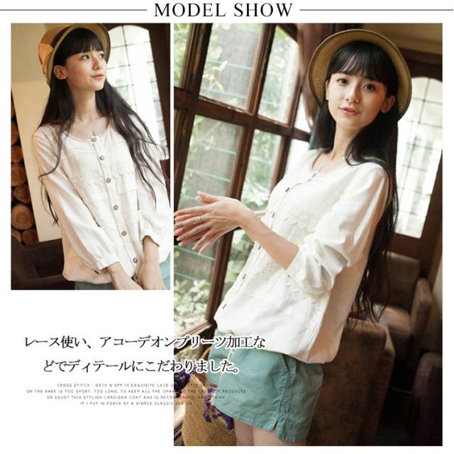 アコーデオンプリーツ、レース使いで女の子らしさアップ。秋服 綿麻 トップス カーディガン リネン ゆったり