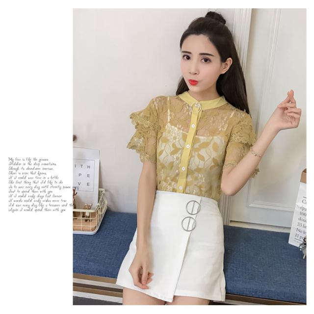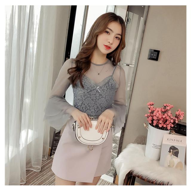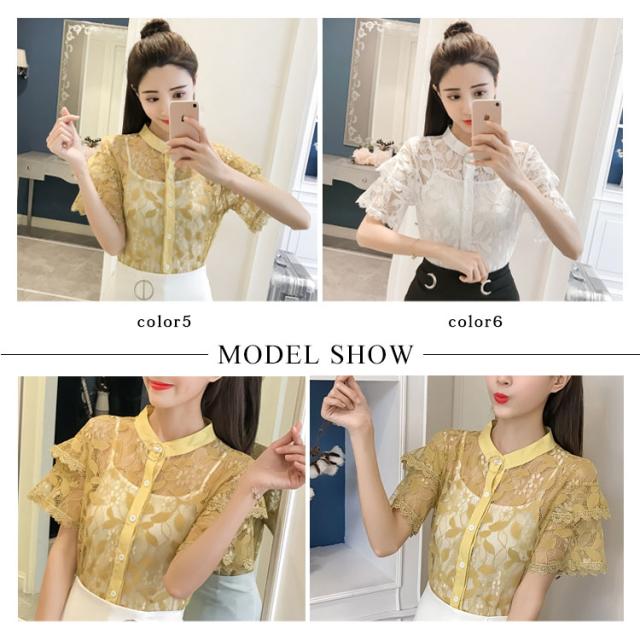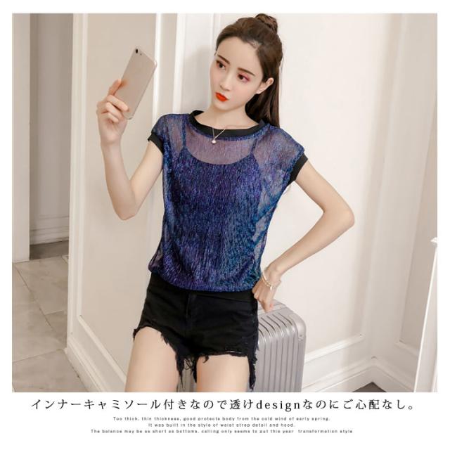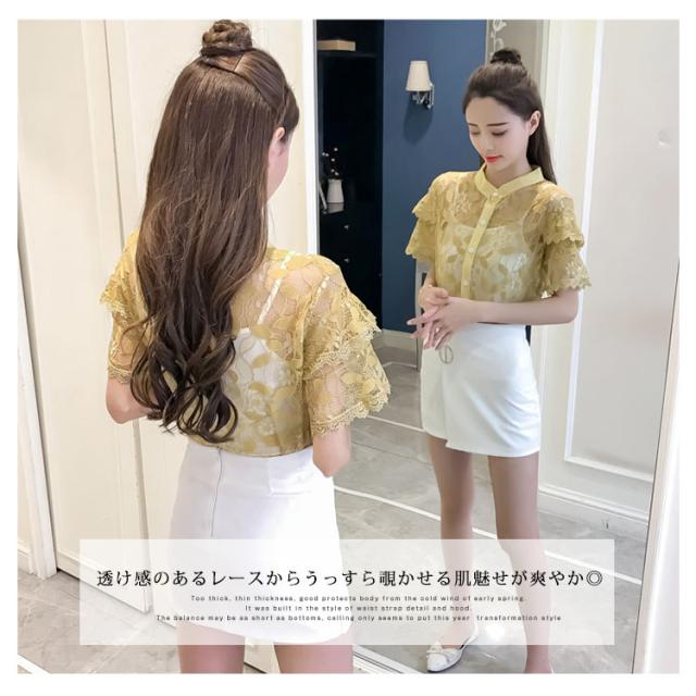 キャミ付属のレーストップス レディース トップス ブラウス レース 透け感 夏