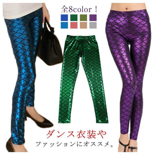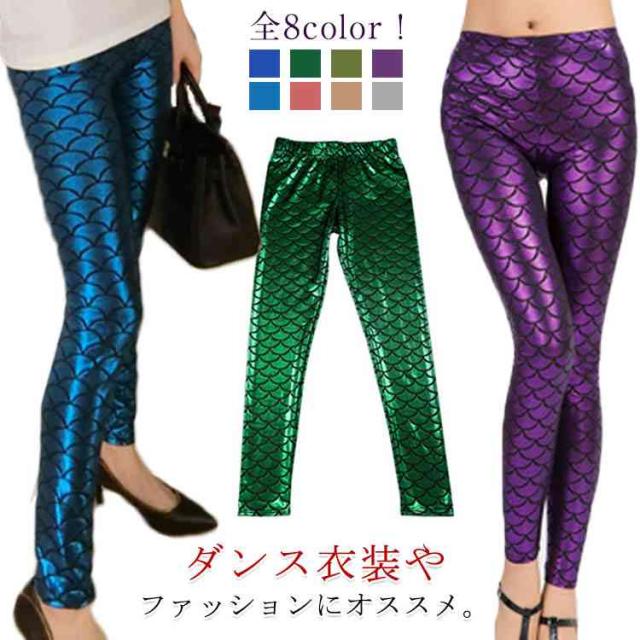 個性的な鱗柄でダンス衣装にもOK!レギンス 柄物 9分丈 ボトムス 派手