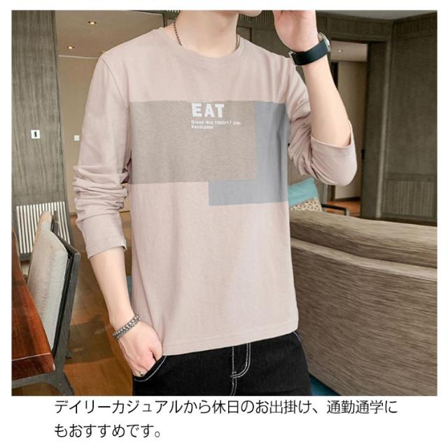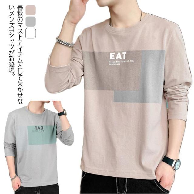 長袖 Tシャツ メンズ カットソー ストリート トップス カジュアル 部屋着 ジュニア 大きいサイズ 春秋 普段着 ゆったり 通気性 プリント 送料無料