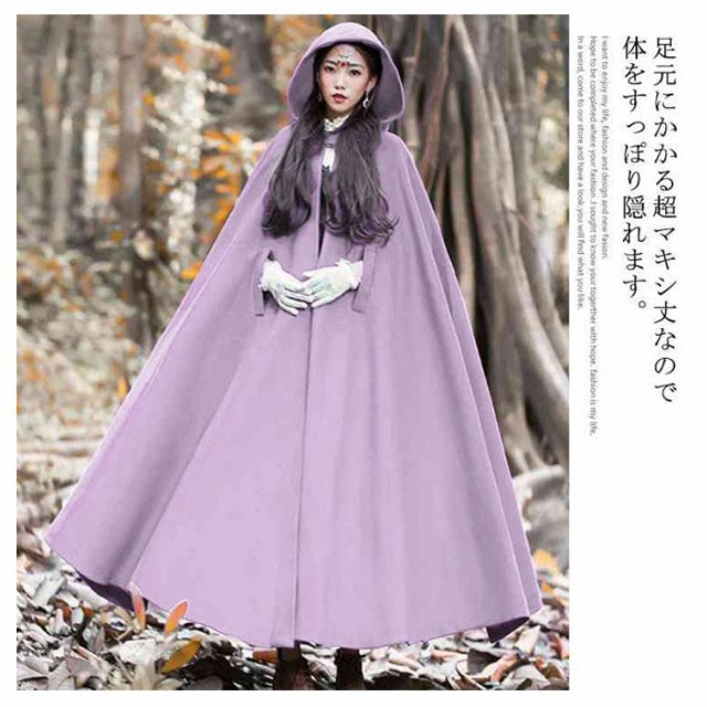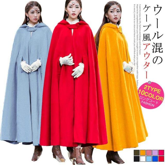 2018冬物 ケープ風 ロングコート マキシコート ウール混 防風 防寒
