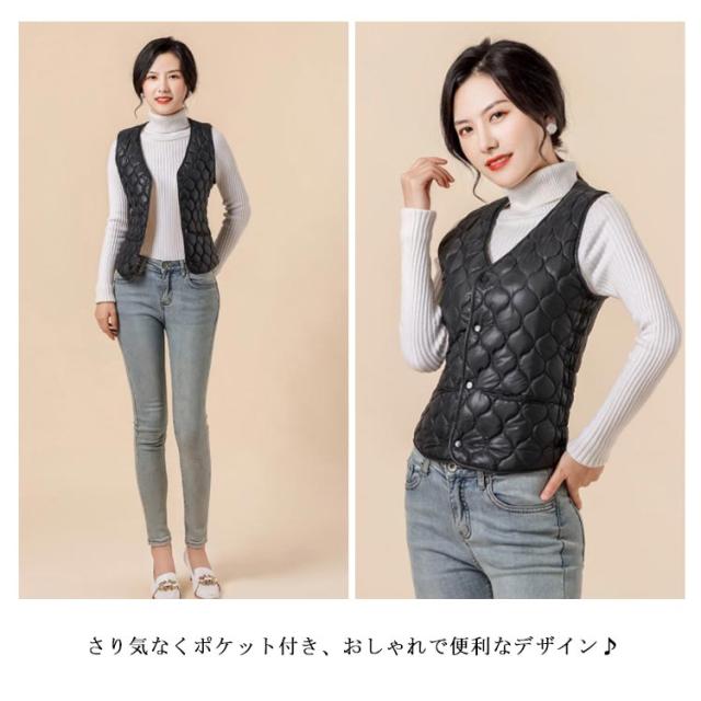 ライトダウンベスト レディース 秋冬春 インナーベスト Vネック アウター トップス ダウンベスト レディース ベスト ダウン ウルトラライトダウン 軽量ダウン 薄い 軽い 防寒 女性 中綿入り 暖かい コート