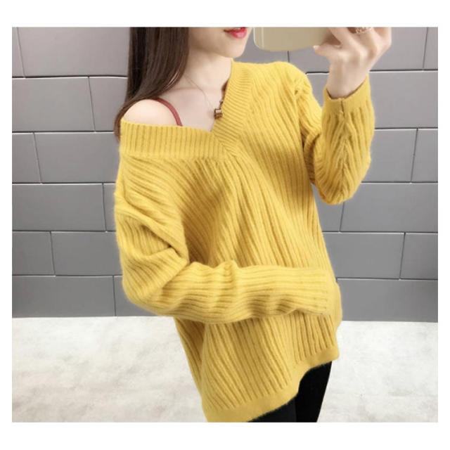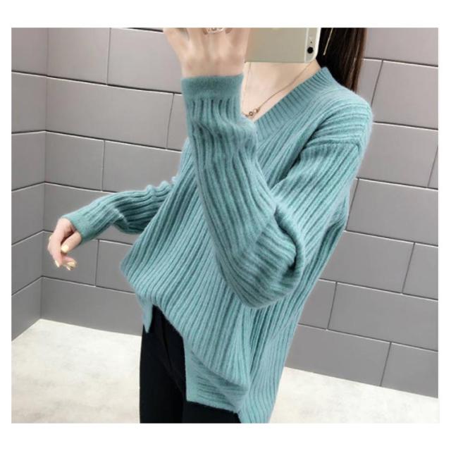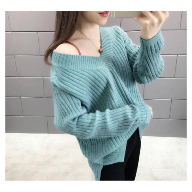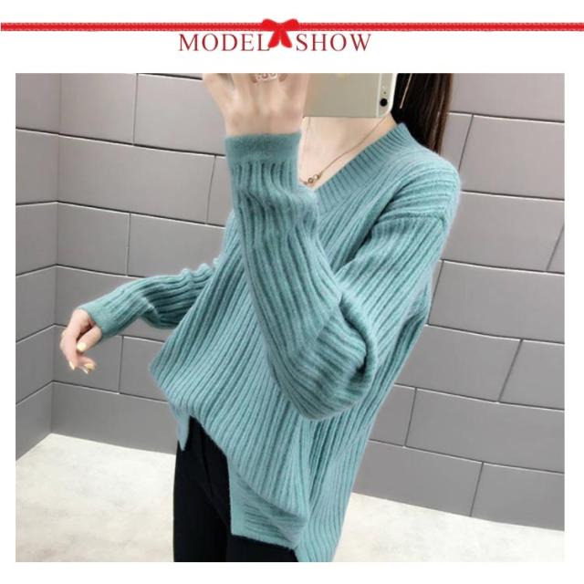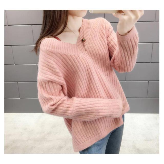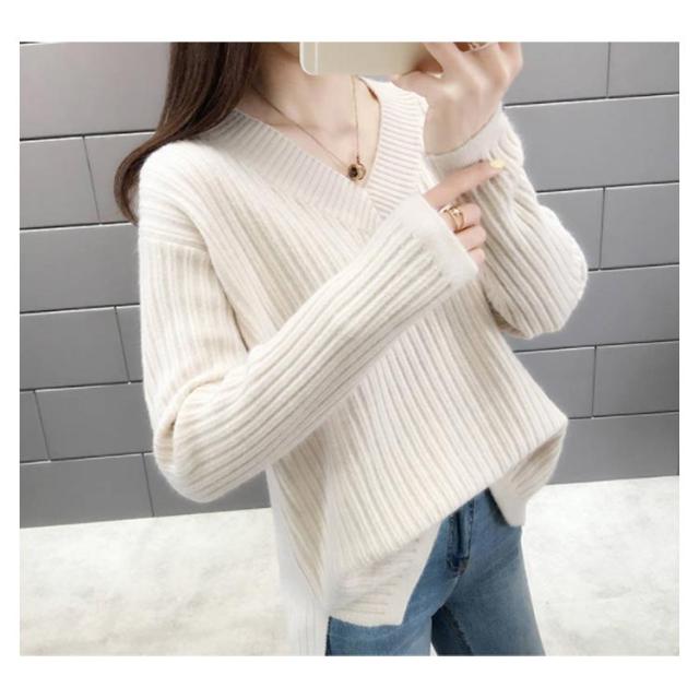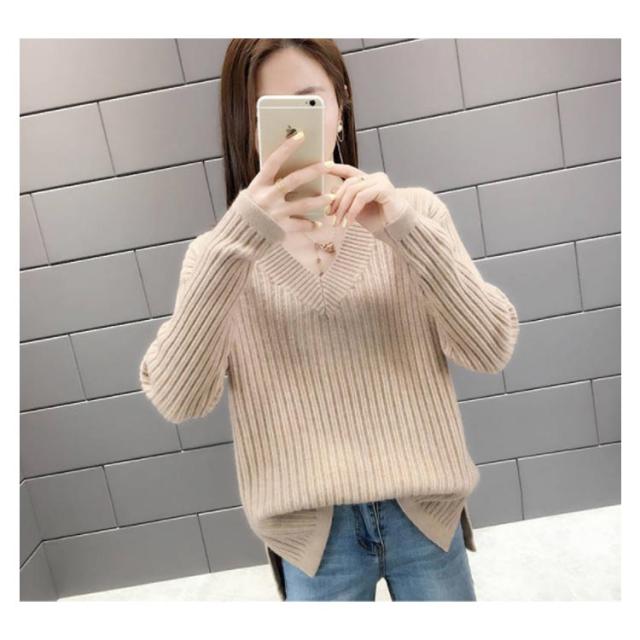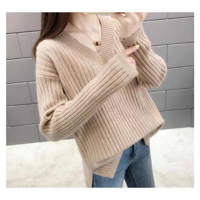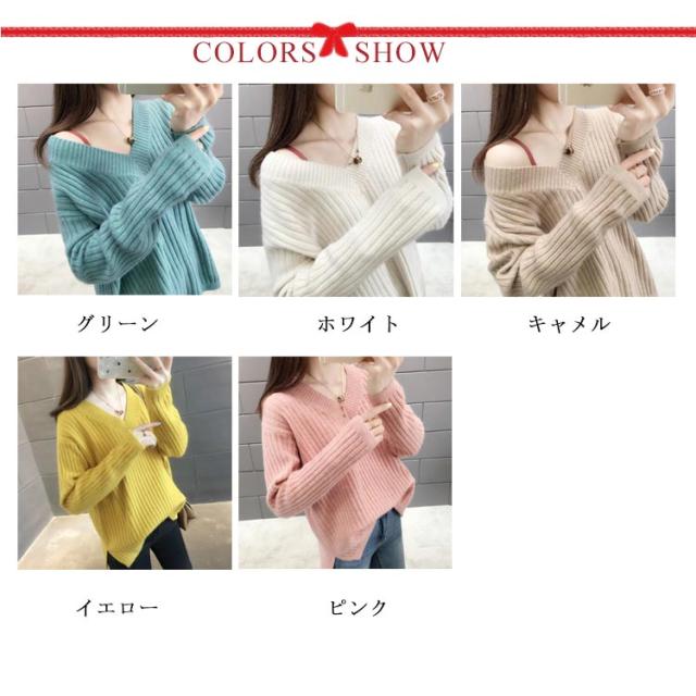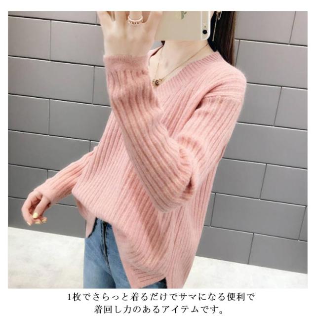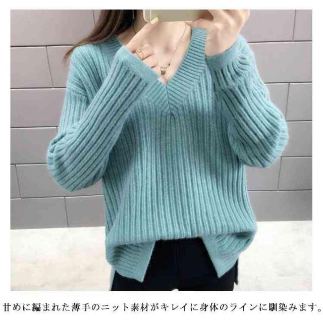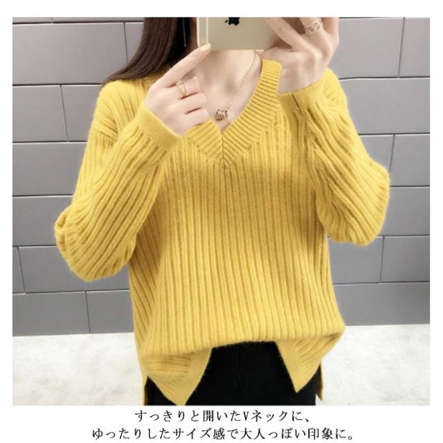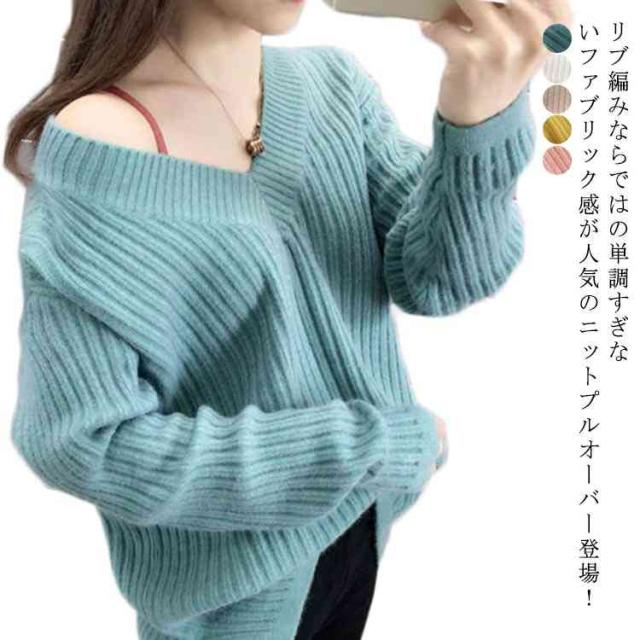 ニット レディース Vネックセーター レディース トップス カットソー セーター ニットウェア リブニット 長袖 長そで 冬 ワイドリブ ニットプルオーバー