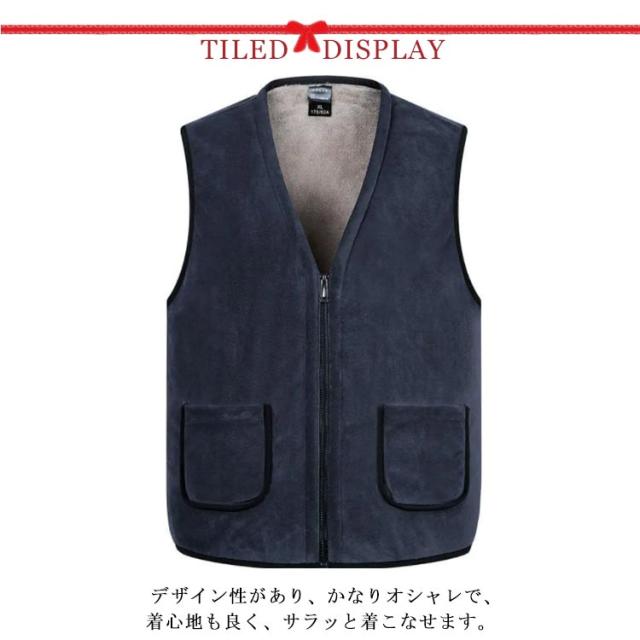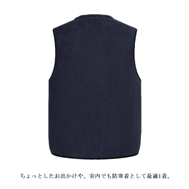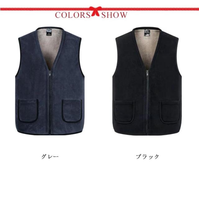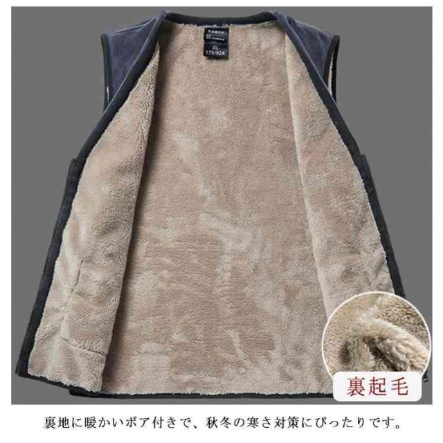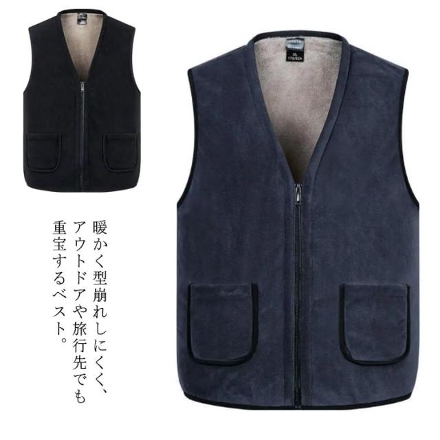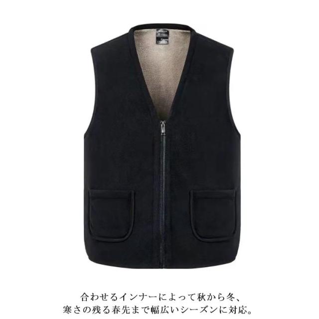 裏ボアベスト メンズベスト インナーベスト チョッキ Vネック 裏起毛 無地 防寒 あったか 厚手 前開き ポケット カジュアル 春秋冬 アウター ファスナー 20代 30代 40代 50代