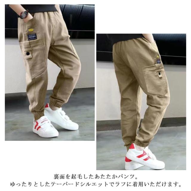 カーゴパンツ 男の子 裏起毛 テーパードパンツ ウエストゴム ジョガーパンツ 子供服 男の子 カジュアル アメカジ キッズ ジュニア 着回し 通学 110cm 120cm 130cm 140cm 150cm 160cm