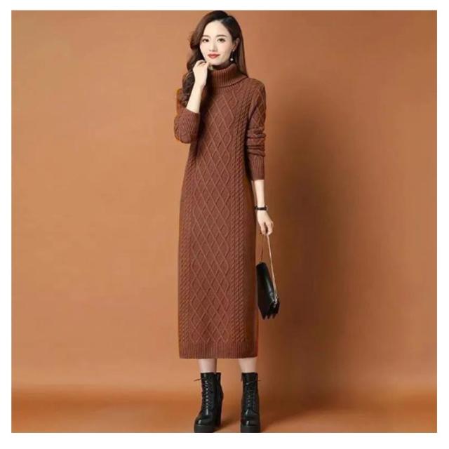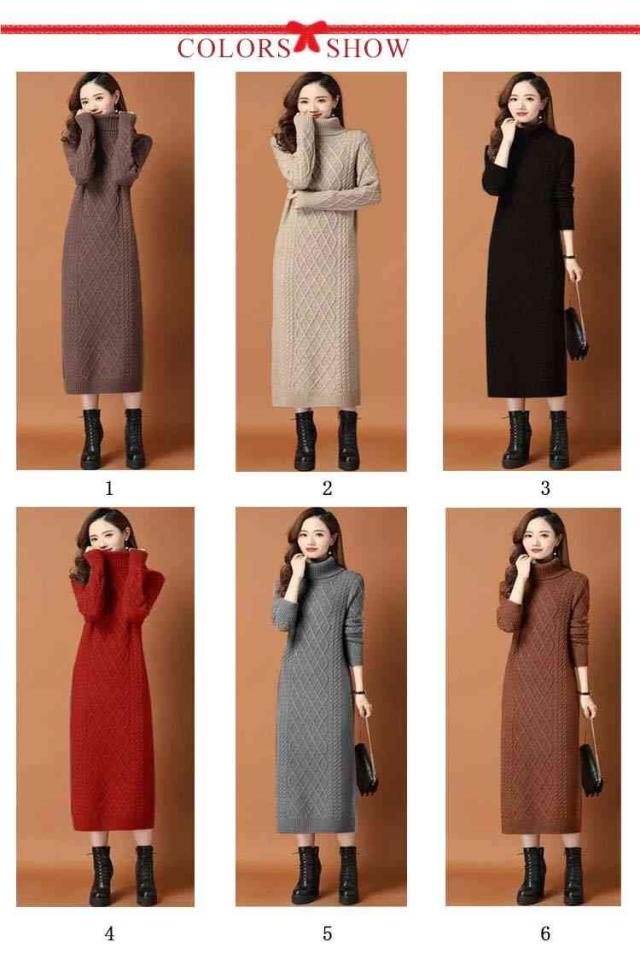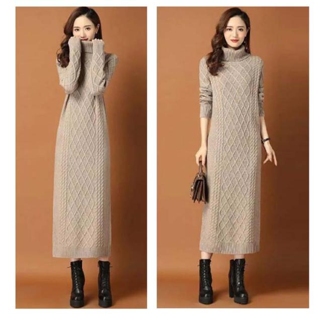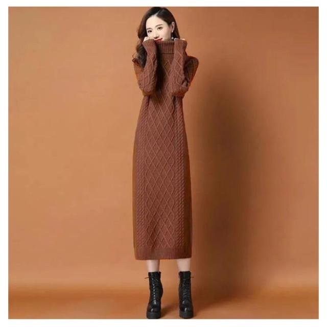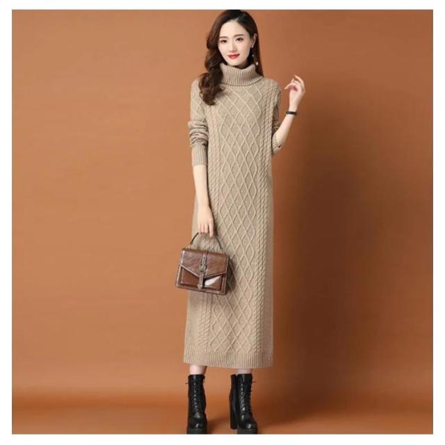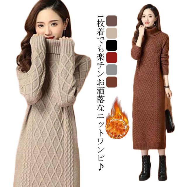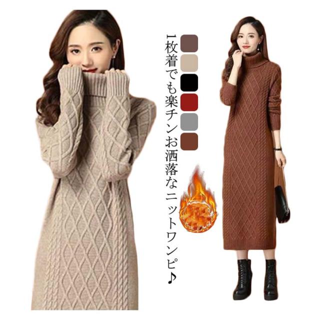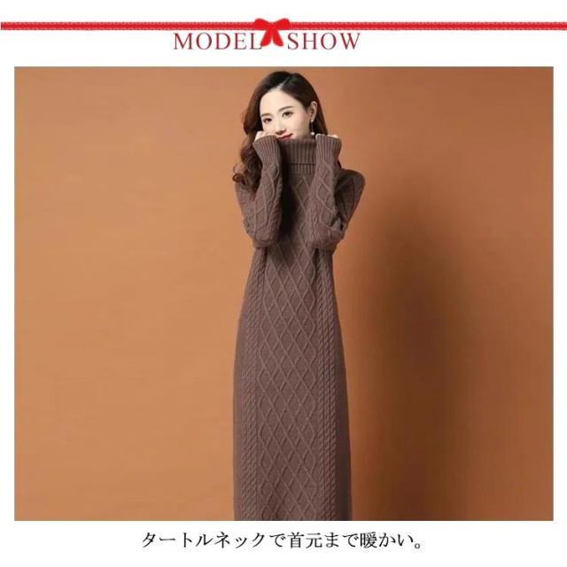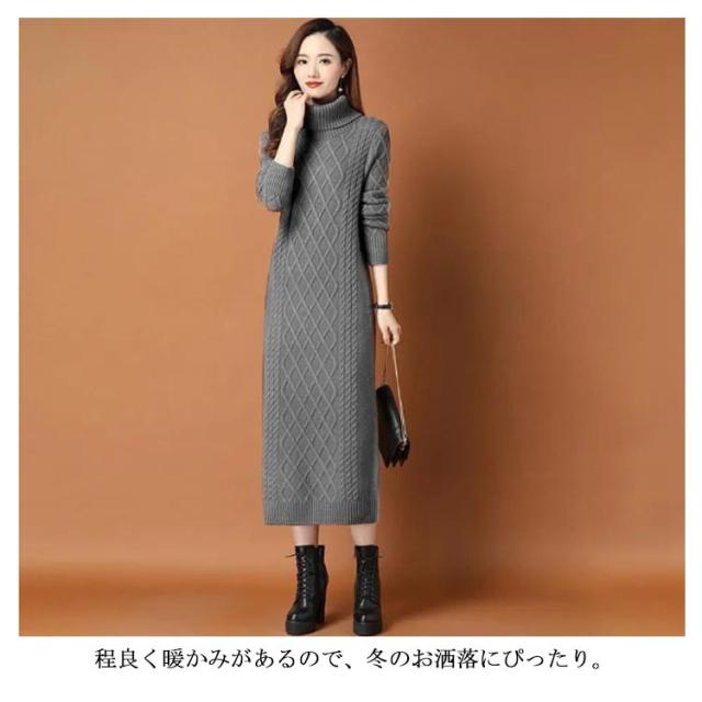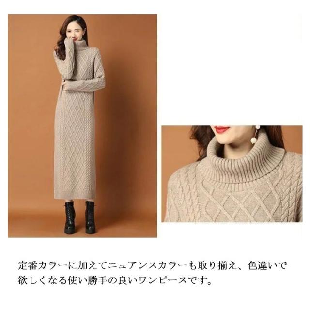 タートルネック ニットワンピース ゆるニット ロング丈 ロングニットワンピース ハイネック ミモレ丈 ニットワンピース ミモレ あったかニット かわいい シンプル 無地