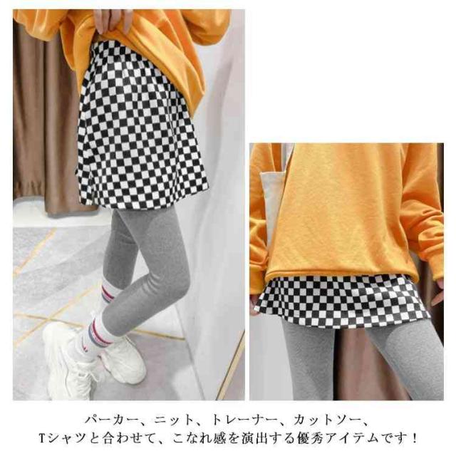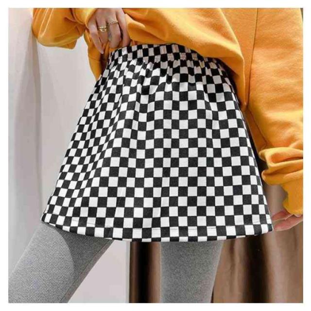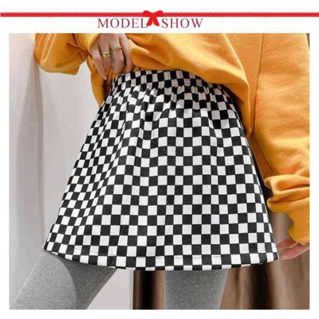 黒+白 チェック柄 付け裾 つけ裾 レイヤード インナー レイヤードカットソー ストライプ 裾フレア 裾フリル ウエストゴム ミニスカート スリットレイヤード