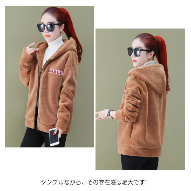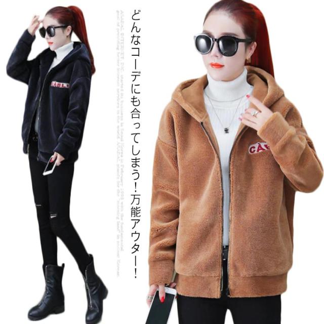 フェイクファーコート ファーコート ファージャケット レデイース 毛皮コート ジャケット 秋冬 コート ムートンコート ショート丈 カジュアル モコモコ ロゴ付き フード付き ワンポイント ショート丈コート