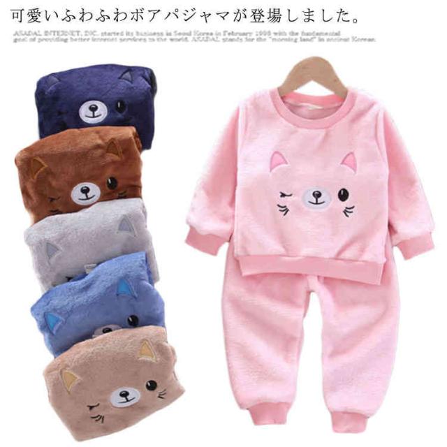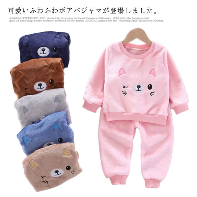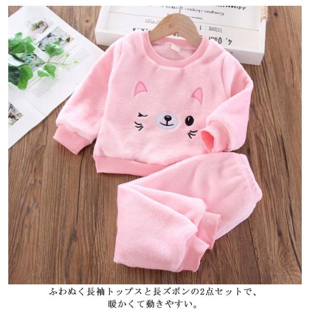 ふわふわ モコモコ ルームウェア キッズ 上下セット セットアップ 2点セット もこもこ 可愛い ボア パジャマ 子供 キャラクター パジャマ 暖かい 秋冬 フリース クルーネック ロングパンツ 冬 秋 あったか
