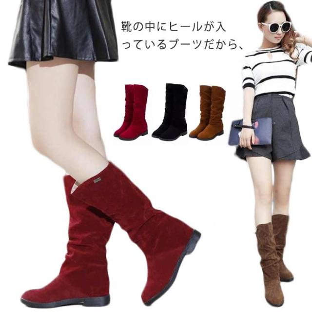ブーツ レディース ショート 履きやすい 5cmヒール インヒール 黒 ブラック 茶 ブラウン ワインレット ローヒール ぺたんこ ブーツ ハーフ レディース靴 コスプレ ロングブーツ