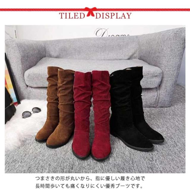 | 靴の中にヒールが入っているブーツだから、 ぱっと見はぺたんこの靴なのに、背が5cm高くなっちゃいます。 一日中はいても辛くない楽な履き心地です。 つまさきの形が丸いから、指に優しい履き心地で長時間歩いても痛くなりにくい優秀ブーツです。 若い女の子から大人女子まで、幅広い女性のお客様にご愛用いただいているレディース靴です。 | |