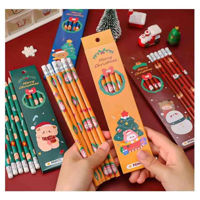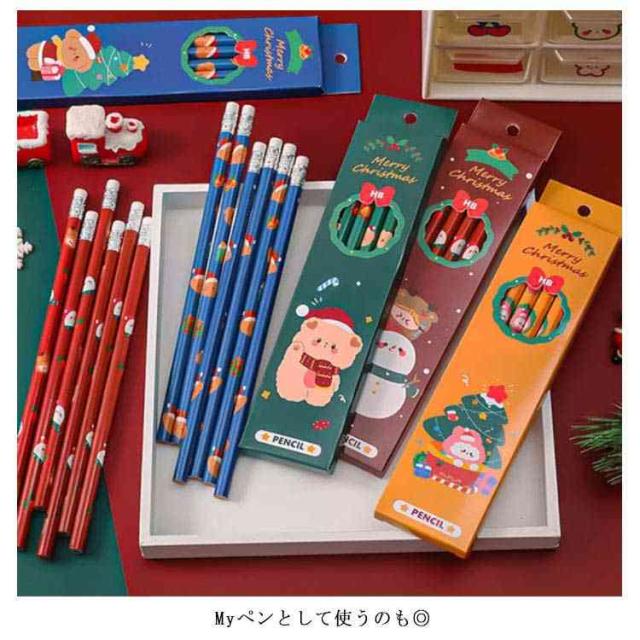 【6本セット 4種類】鉛筆 セット ペン 可愛い 赤 キャラクター かわいい 女性 プレゼント クリスマス サンタクロース ペン セット えんぴつ クリスマスグッズ