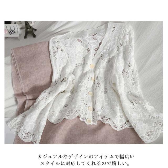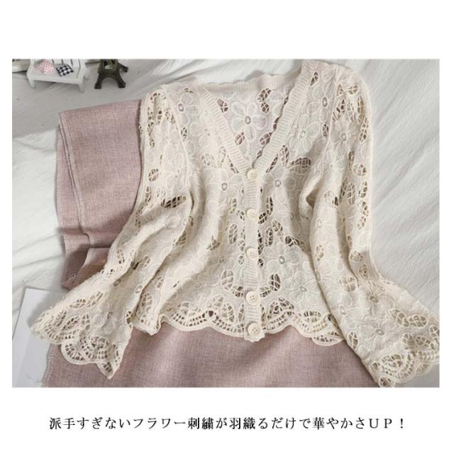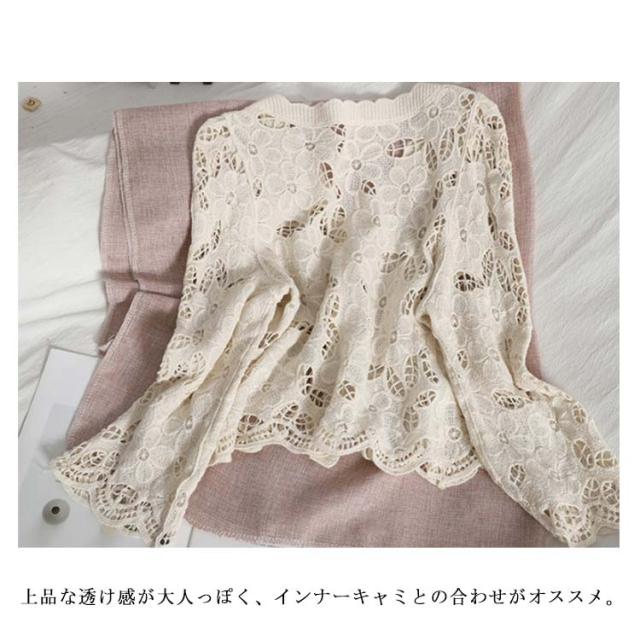 サマーカーディガンンン レース レディース 長袖 カーディガンンン ショート丈 透かし編み カットワーク ボレロ 羽織り 冷房対策 トップス コーデ 春 夏 秋 薄手 薄地 シンプル 20代 30代 40代