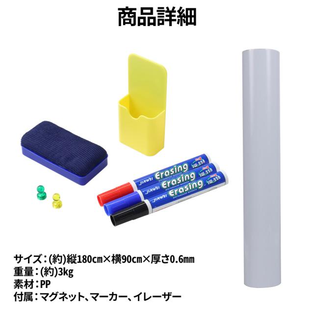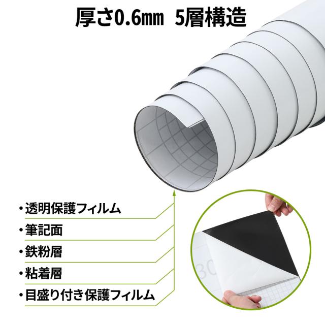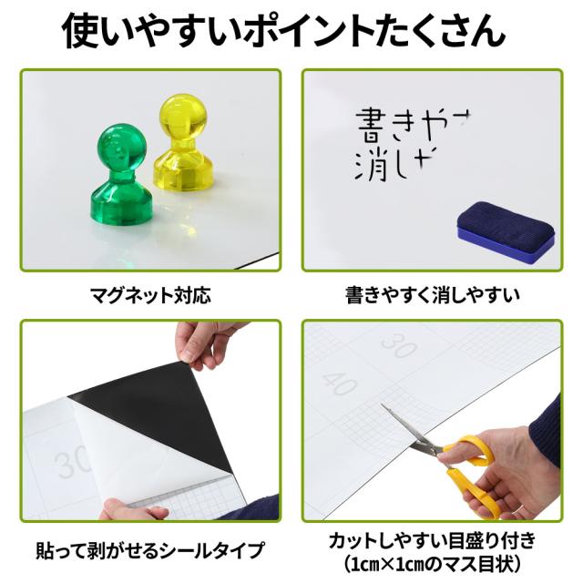 ホワイトボート シート マグネット 180cm × 90cm 厚さ0.6mm シールタイプ マグネットシート マグネットシール 磁石対応 カット可能 目盛り付き 壁面 貼って 剥がせる 大判 ホワイトボードシート 磁石 授業 会議 落書き 掲示板 プロジェクタースクリーン 伝言板 オフィス