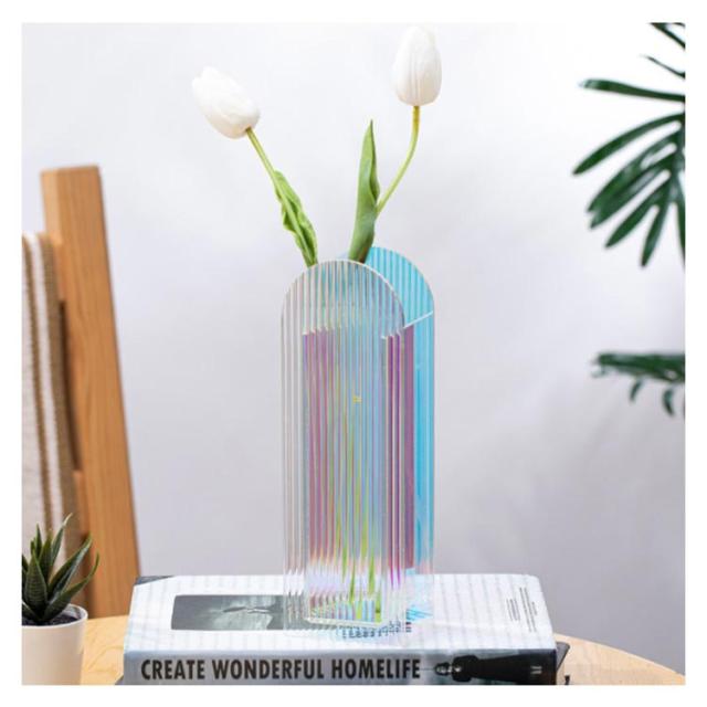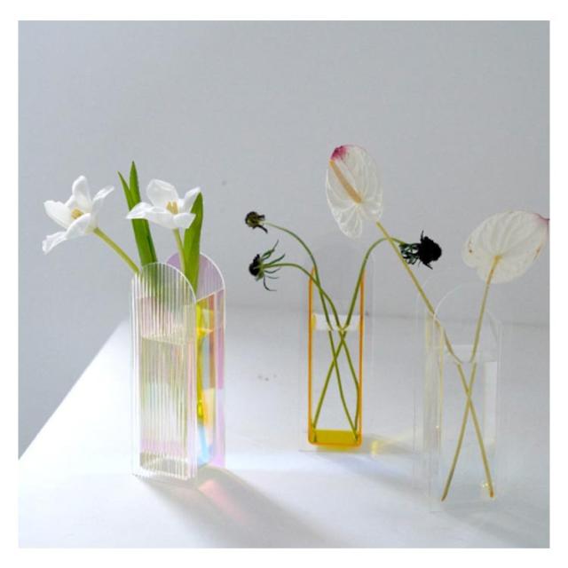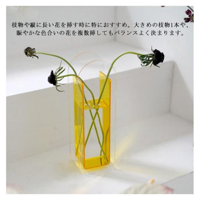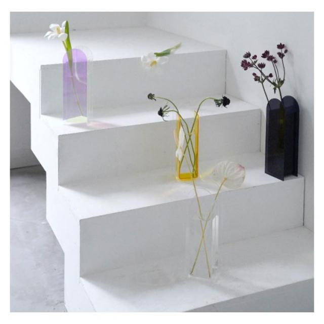 | 特徴があるデザインに見えます。インスタで超人気です!! 光の反射が一際綺麗でおすすめな色合いに仕上がっています。 枝物や縦に長い花を挿す時に特におすすめ。大きめの枝物1本や、賑やかな色合いの花を複数挿してもバランスよく決まります。 | |