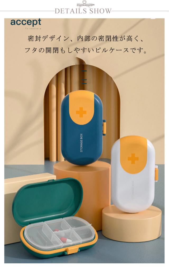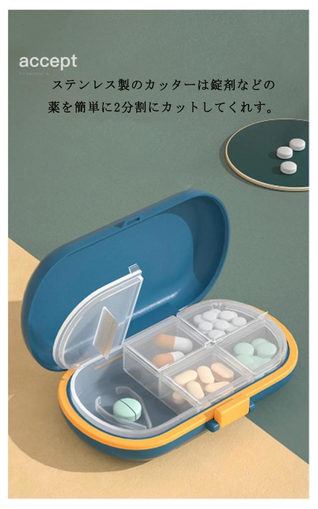 ピルケース ピルカッター付き 薬ケース 仕切り コンパクト 携帯用 密封 旅行 防湿 2分割 薬入れケース 小型 薄型 収納ボックス 小分け 半分 半錠 軽い 軽量 おしゃれ 持ち運びやすい 送料無料