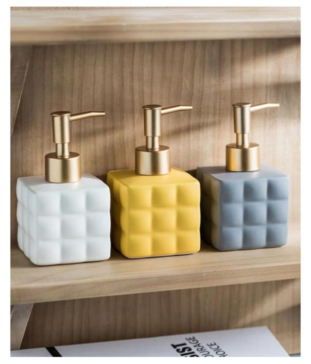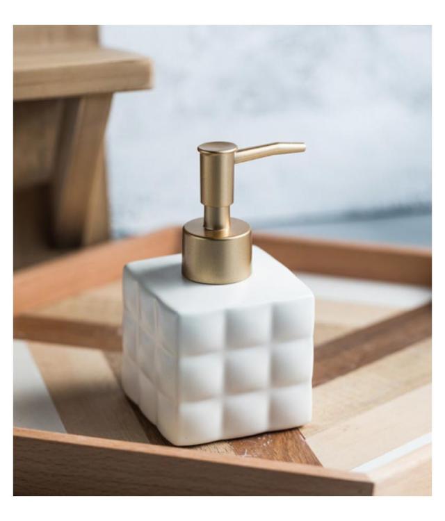 | 生活感が出がちな水周りに 置くだけで存在感のある、セラミック製のお洒落なディスペンサー 市販の液体ハンドソープをはじめ、 シャンプーやトリートメント、化粧水や乳液などでもご使用いただけます。 洗面台だけでなく、化粧台、お風呂場にもなじむデザイン性の高い商品です。 無地タイプ…シンプルにスッキリまとまり、マットな光沢が高級感を演出。 | |