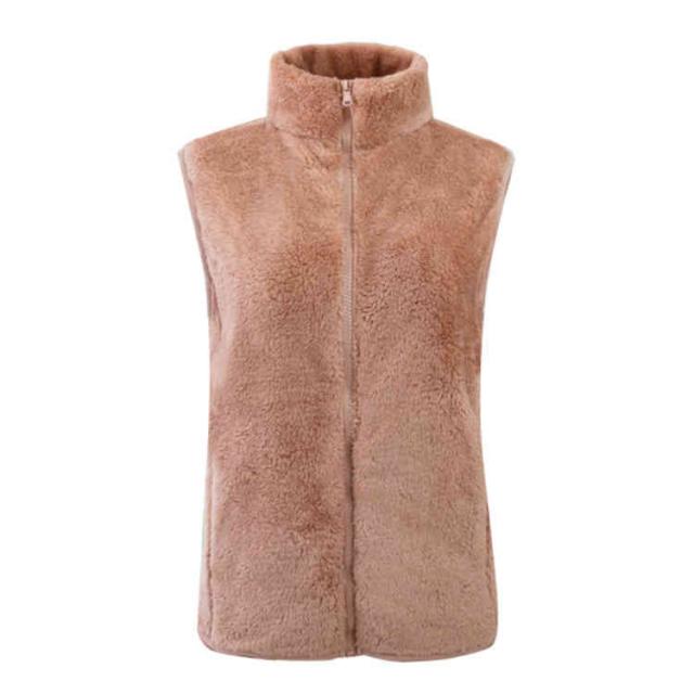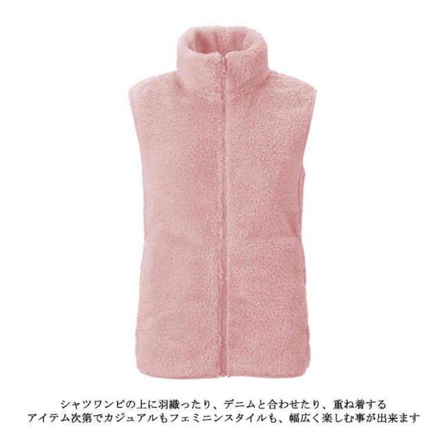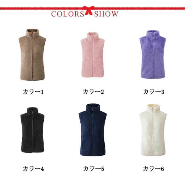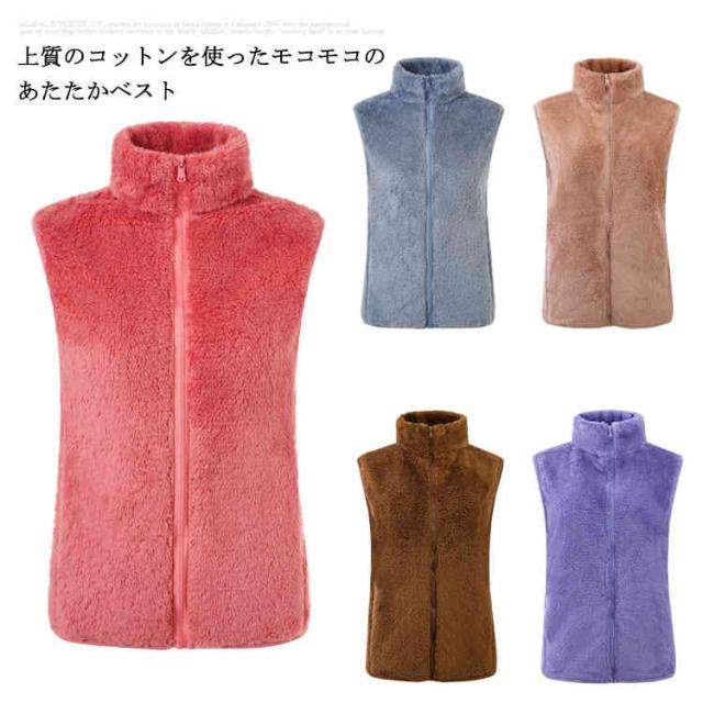 ボアジャケット レディース フリース ボア アウター ベスト ボアベスト フリースベスト スタンドカラー 立ち襟 アウトドア 防寒 もこもこ 無地 大きいサイズ 秋 冬 40代 30代 50代 20代