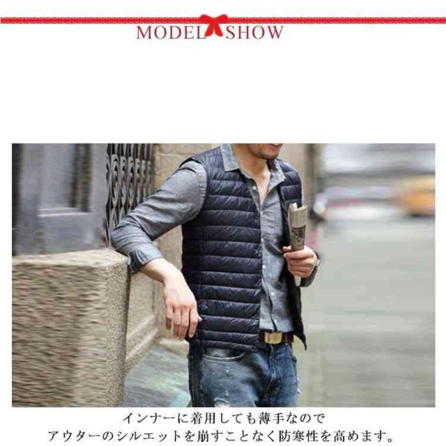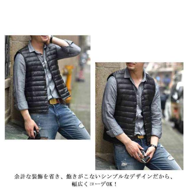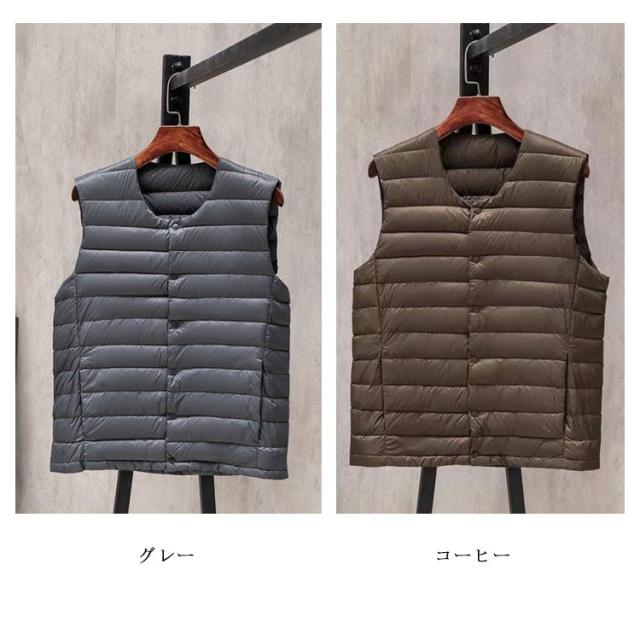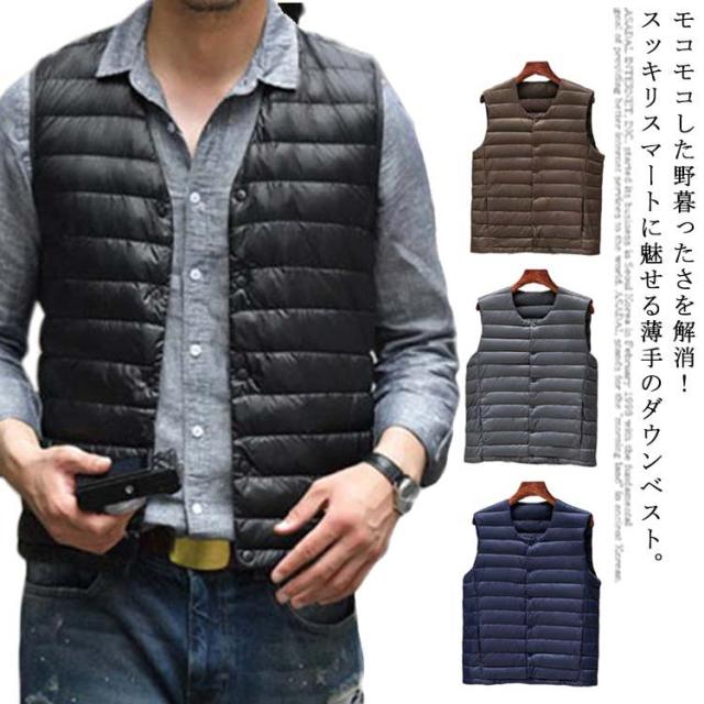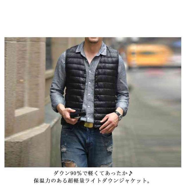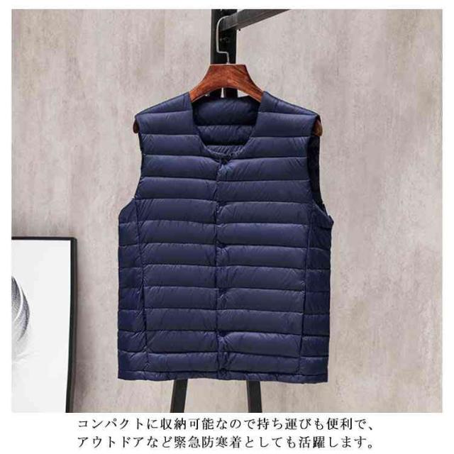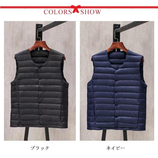 【収納ポケット付き】ダウン90% インナー ベスト インナーダウン メンズ ダウンジャケット Vネック ランドネック 襟転換可能 ショート丈 軽量 防寒 コンパクト アウター ビジネス インナー 秋冬 重ね着 アウトドア ライトアウター