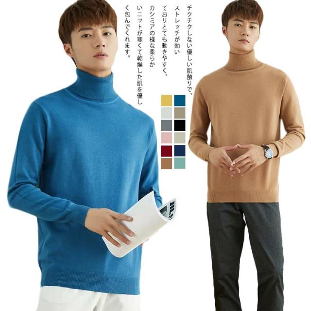 【送料無料】ニット セーター メンズ 全12色 タートルネック リブ 無地 細身 タイト スリム フィット インナー トップス ブラック ホワイト ネイビー 紺 黒 白 大きいサイズ S M L 2L 3L 4L 春 秋 冬 ウール