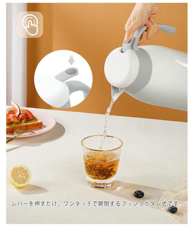 | 真空二重構造なので飲み物の温度をしっかりキープします。電気を使わず保温・保冷のどちらにもご使用いただけます。丈夫で長持ちするステンレス製ポット。 リビングでの寛ぎの時間を楽しむことをコンセプトに生まれたスリムなポット レバーを押すだけ、ワンタッチで開閉するプッシュボタン式です。 冬は温かく夏は冷たく、保温保冷の両方で使えて、おいしい温度を保つ レバー栓は分解して丸洗いできるから、お手入れラクラク 現代のスタイルを意識したシンプルデザインどんな住空間にもマッチします | |